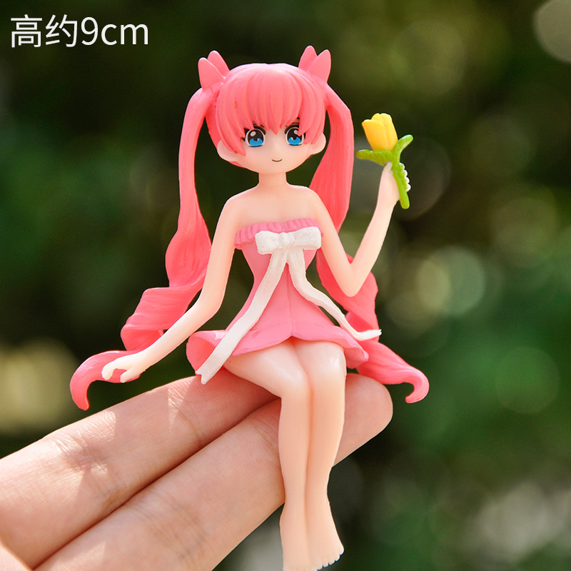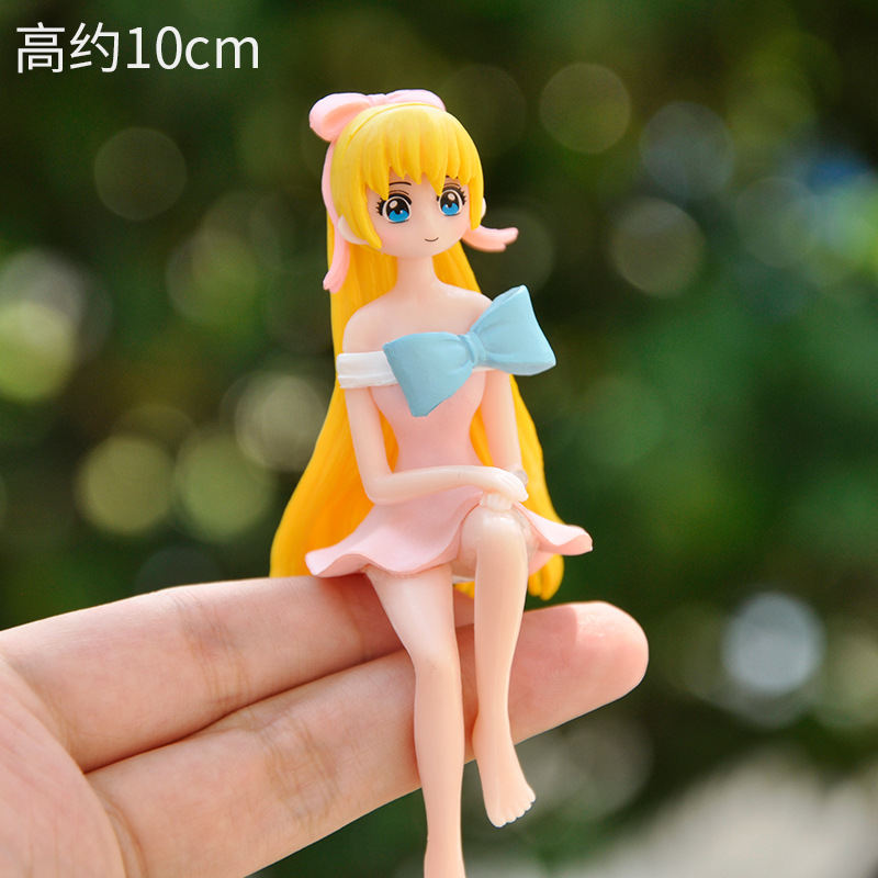 새로운 Q 버전 앉아 예쁜 소녀 인형 귀여운 소녀 심장 데스크탑 케이크 장식 소녀 장난감스토어 가기
