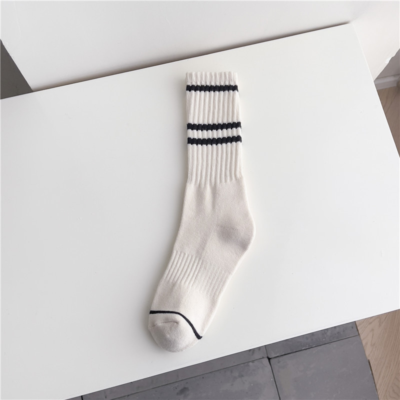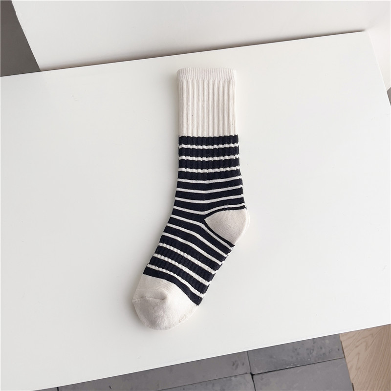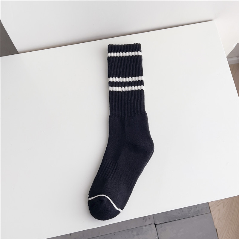 한국 유행 양말 여성용 흑백 양말 두꺼운 줄무늬 수건 양말 유행 쌓인 양말 가을과 겨울 캐주얼 중간 길이 양말