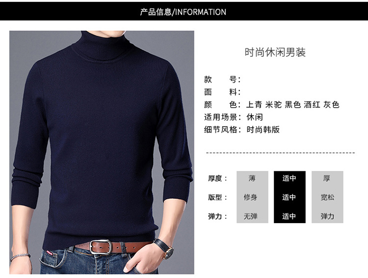 2021 가을 새로운 남성 스웨터 단색 스웨터 남성 하프 터틀넥 느슨한 바닥 셔츠 긴 소매 스웨터스토어 가기