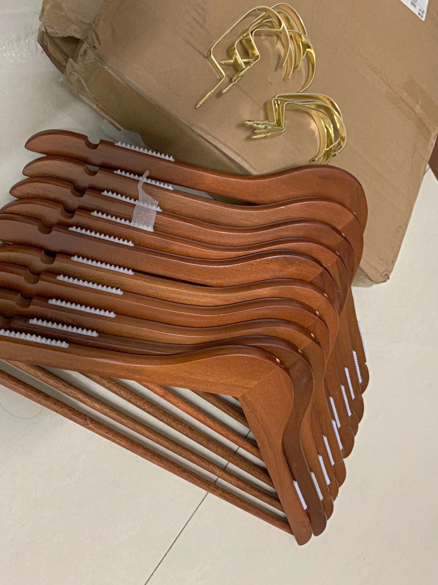 고급 목재 옷걸이, 의류 매장용 미끄럼 방지 가정용 옷걸이, 호텔용 흔적 없는 옷장 도매스토어 가기