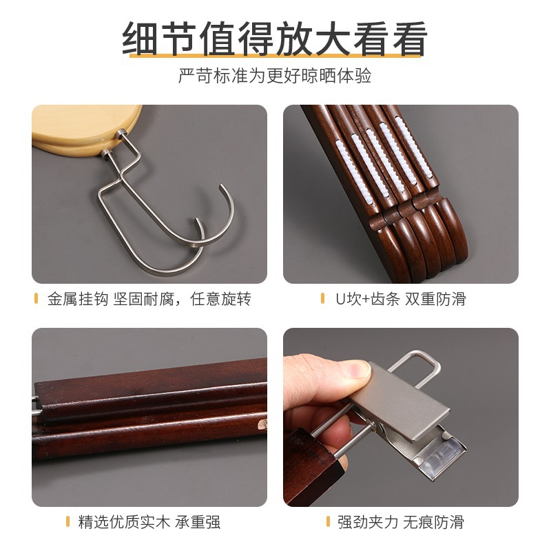 고급 목재 옷걸이, 의류 매장용 미끄럼 방지 가정용 옷걸이, 호텔용 흔적 없는 옷장 도매