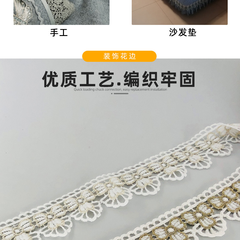 소매 및 도매 금사 삼엽 레이스 수용성 장식 소재 소파 침구 커튼 원단 소재 샤넬 스타일스토어 가기