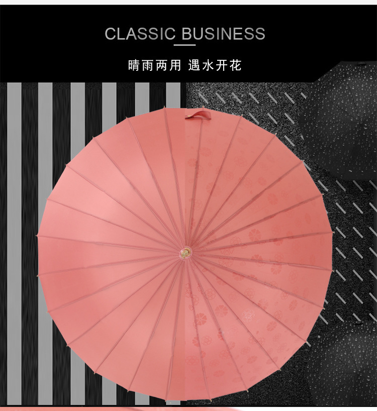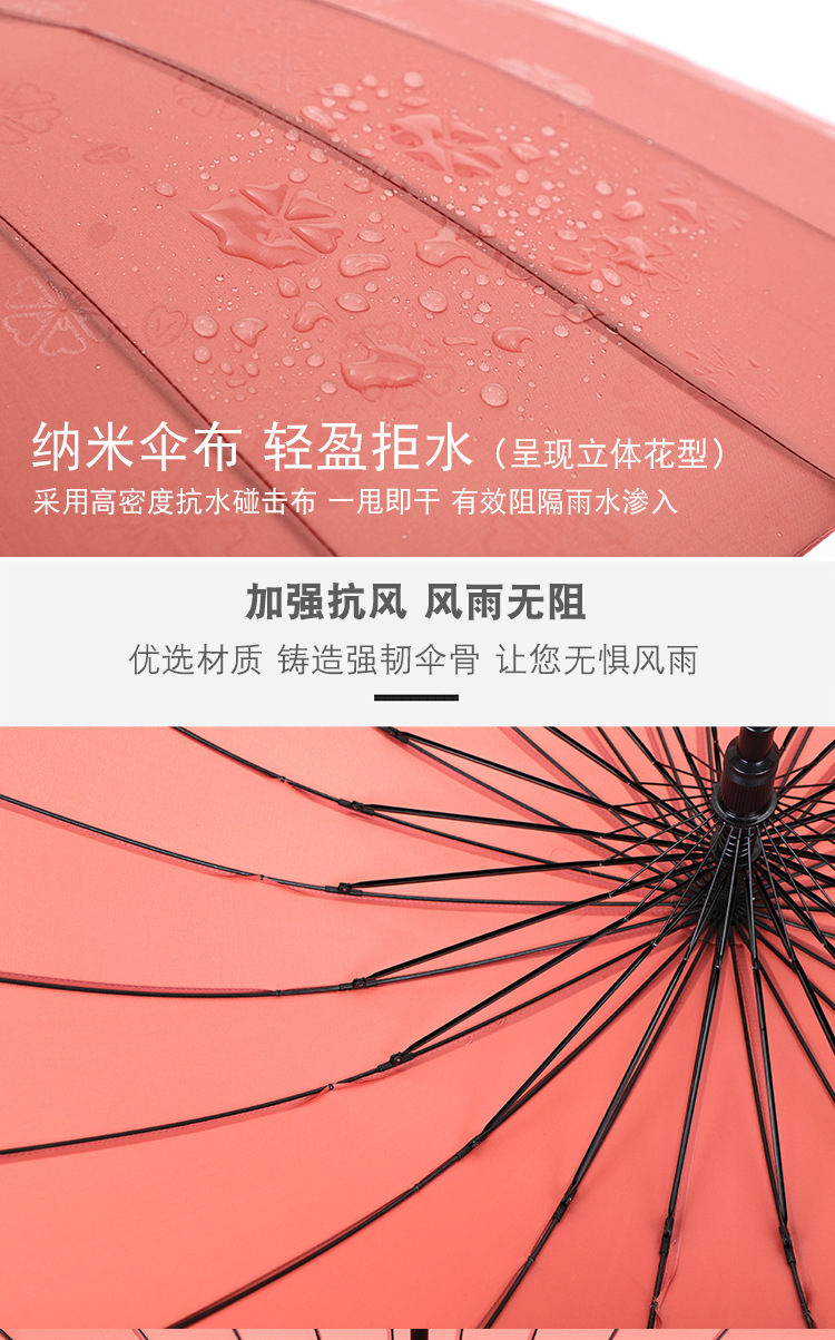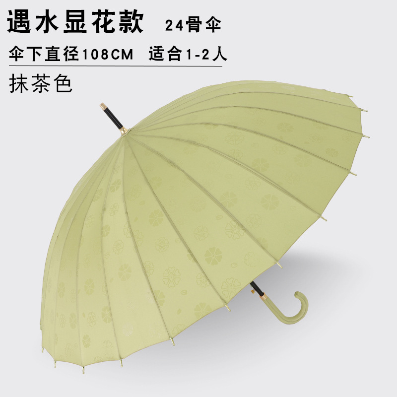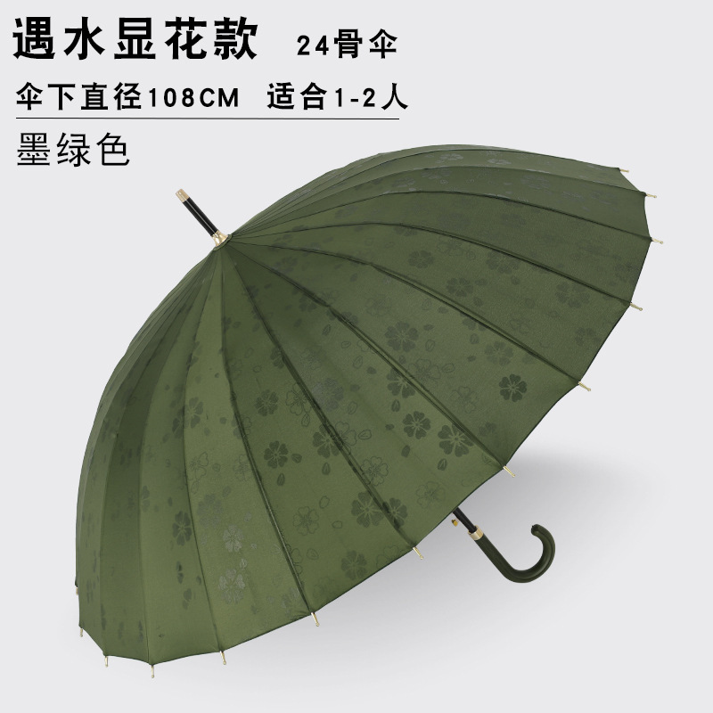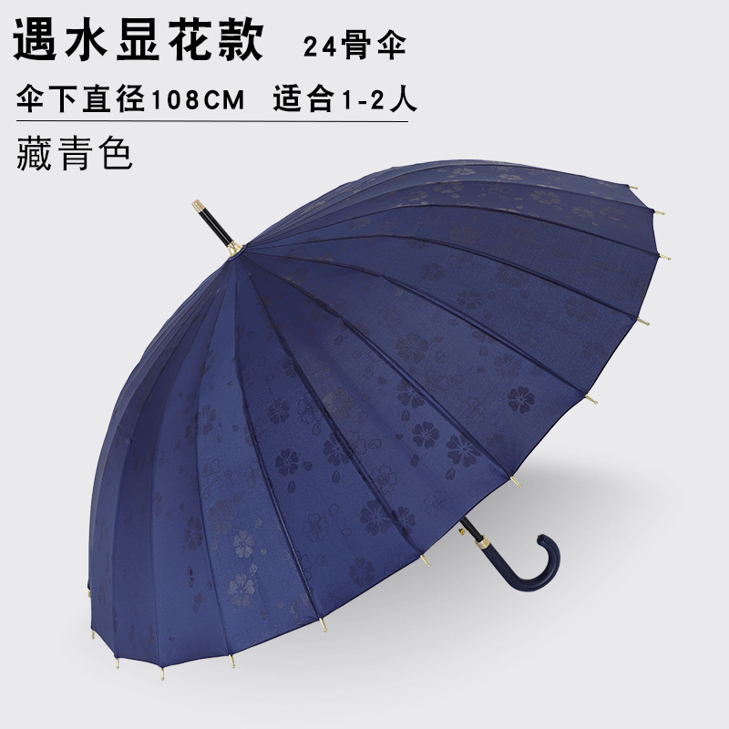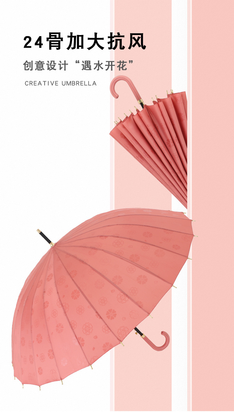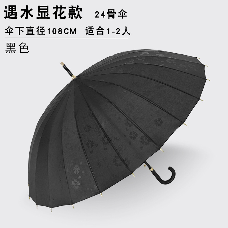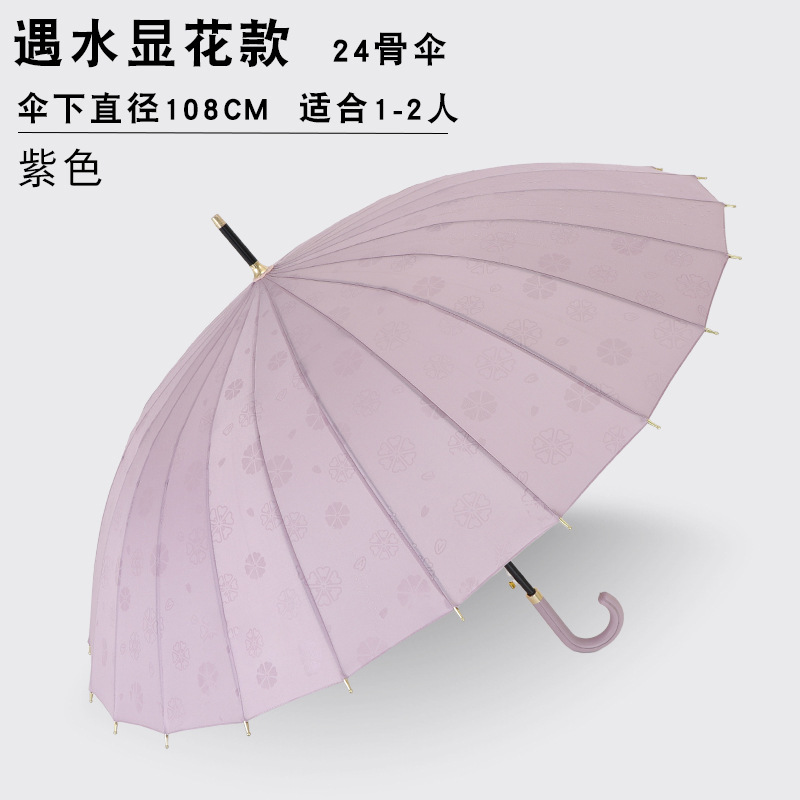 긴 손잡이 24 뼈 방풍 가죽 곡선 손잡이 창조적 인 물 꽃 우산 직선 막대 이중 사용 우산 단색 광고 우산