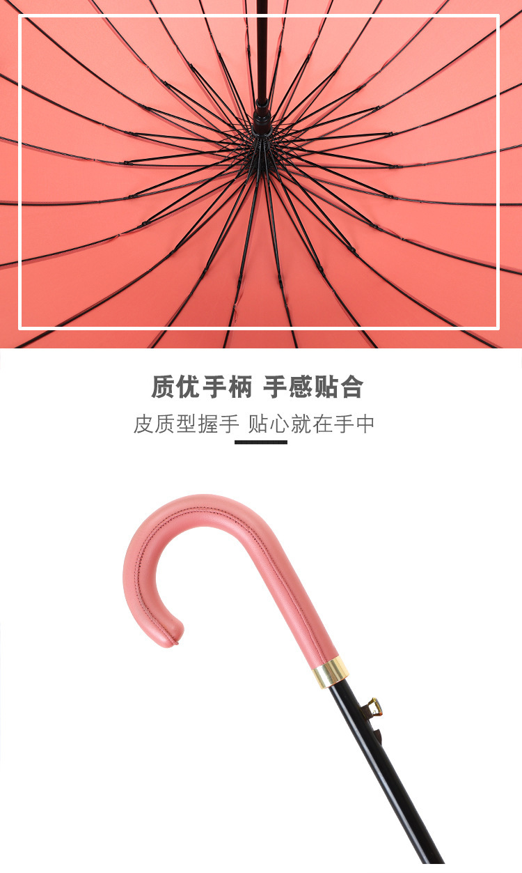 긴 손잡이 24 뼈 방풍 가죽 곡선 손잡이 창조적 인 물 꽃 우산 직선 막대 이중 사용 우산 단색 광고 우산스토어 가기
