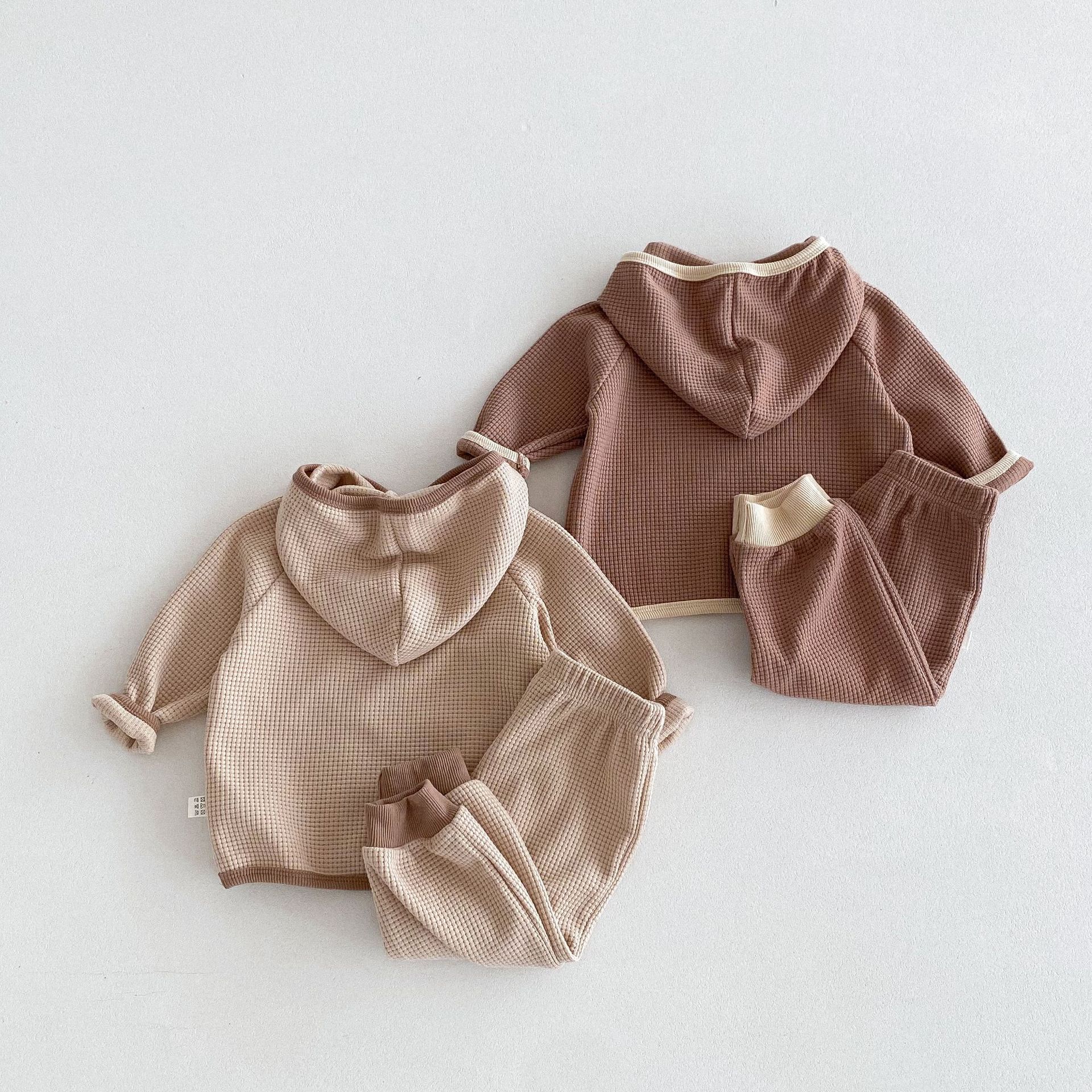 어린이 한국 스타일 아기 세트 2025 가을 신상 남녀 아기 트렌디 후드 긴팔 셔츠와 바지 투피스 세트