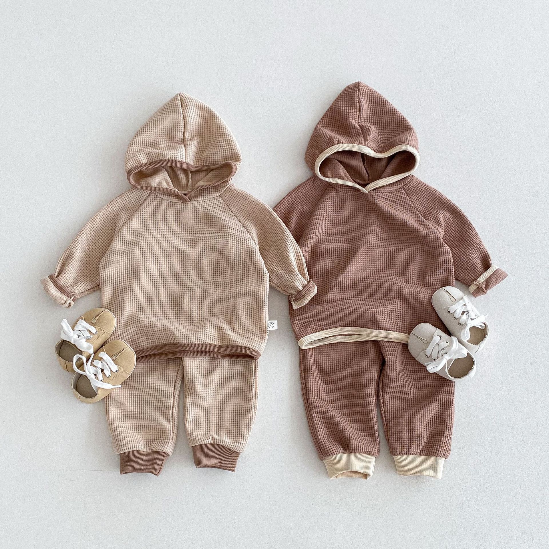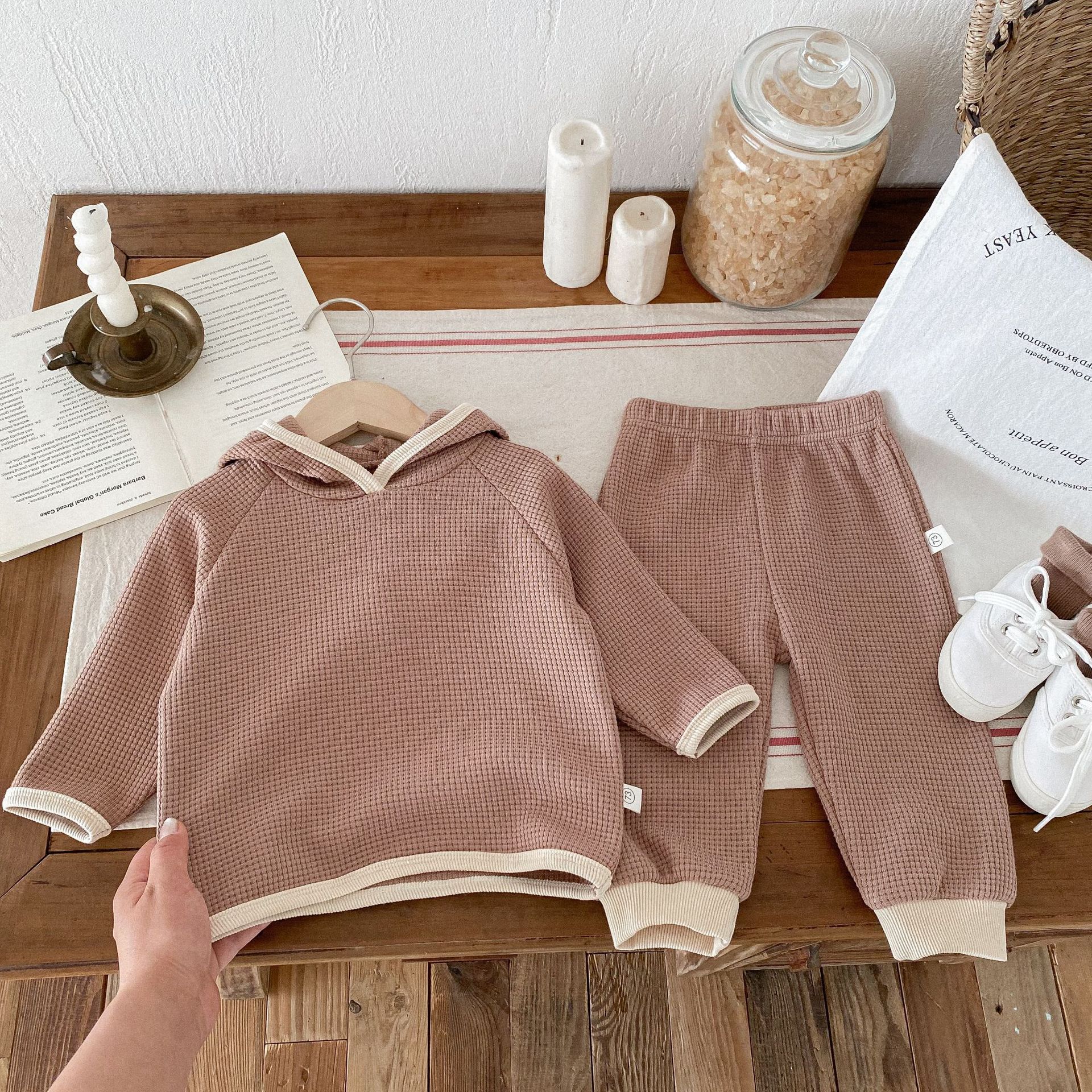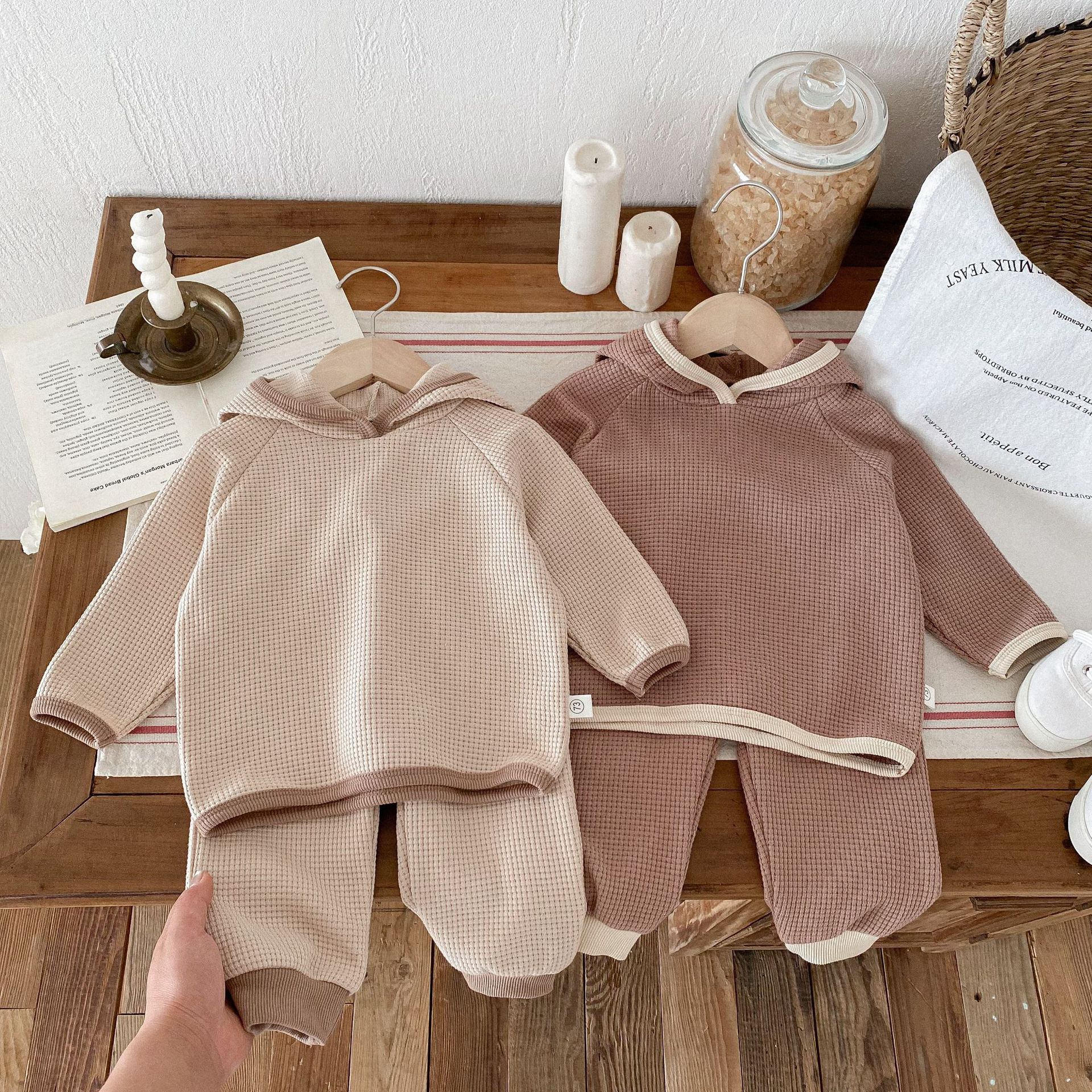 어린이 한국 스타일 아기 세트 2025 가을 신상 남녀 아기 트렌디 후드 긴팔 셔츠와 바지 투피스 세트스토어 가기