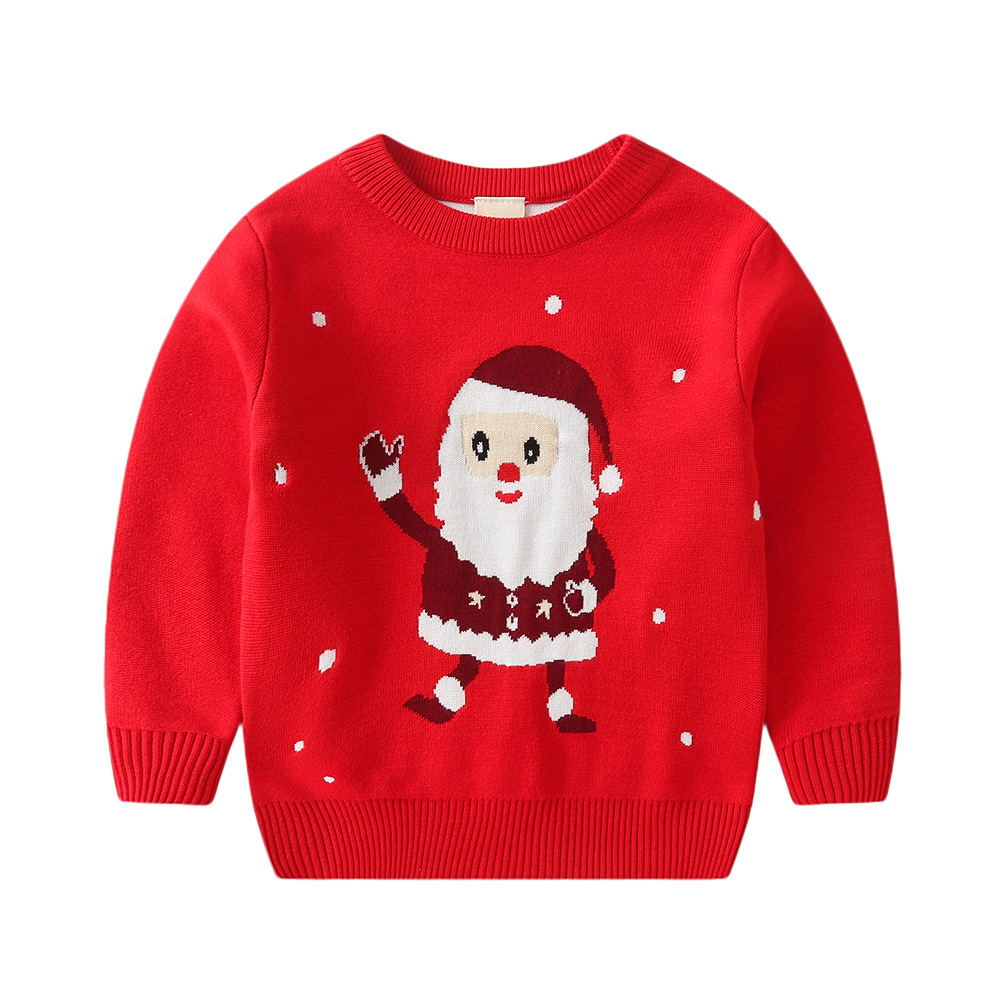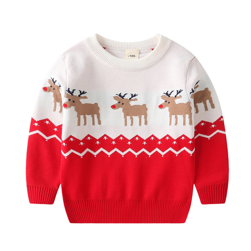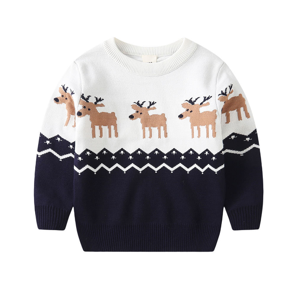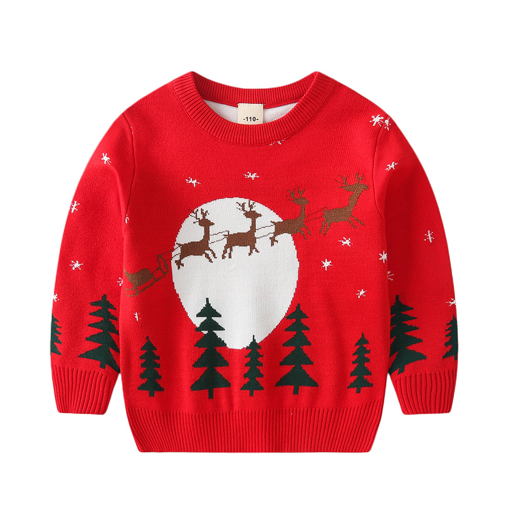 국경 간 외국 무역 크리스마스 어린이 스웨터 만화 썰매 사슴 산타 클로스 풀오버 긴 소매 재고 도매