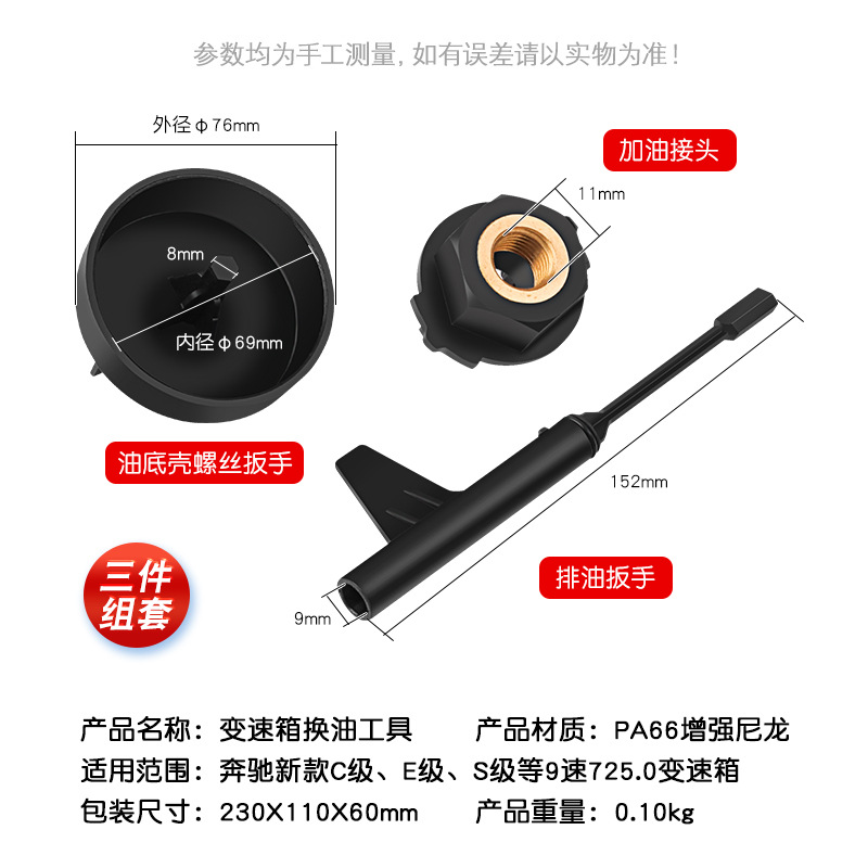 메르세데스-벤츠 9 단 725.0 기어 박스 오일 교환 도구 9G 오일 레벨 체크 기어 특수 분해 렌치 자동 수리 도구