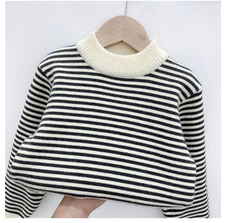 가을과 겨울 기모 소년 스웨터 풀오버 세련된 소년 아동 원피스 양털 스트라이프 니트 베이스 셔츠스토어 가기