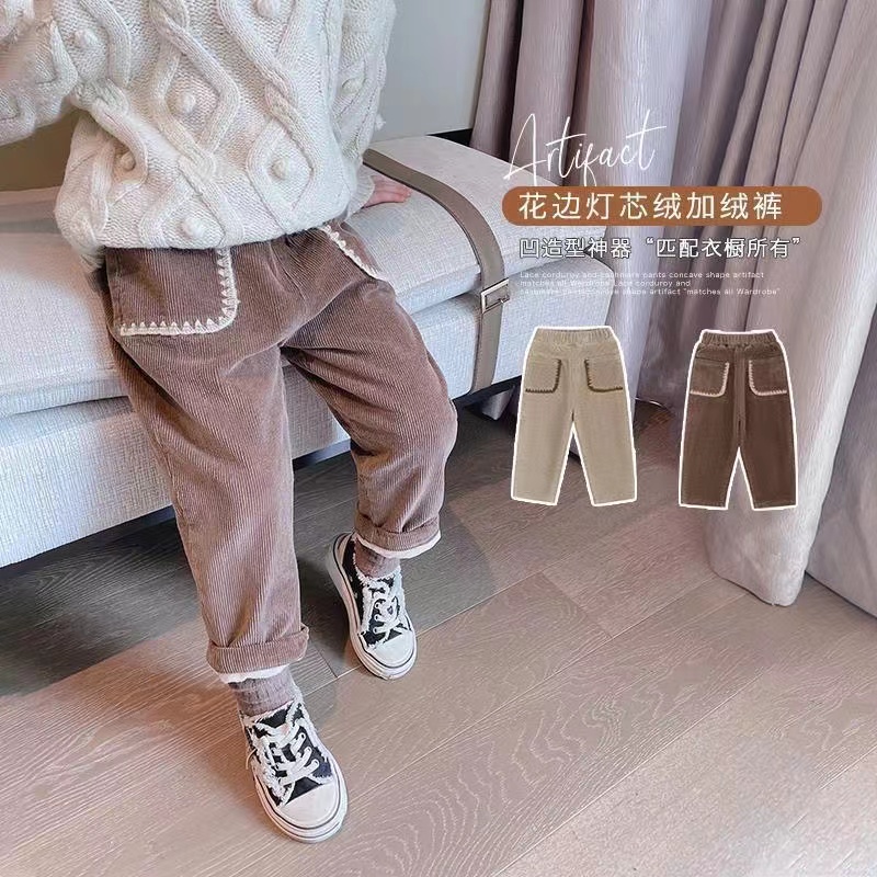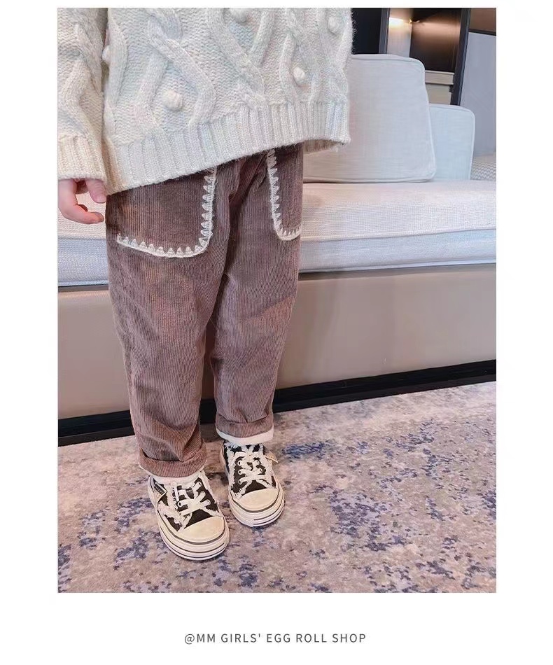 여아 벨벳 바지 2023 겨울 신상품 바지 아기 따뜻한 코듀로이 바지 가을과 겨울 캐주얼 바지 한국 스타일스토어 가기