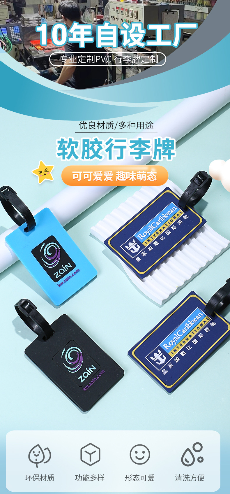 사용자 정의 PVC 부드러운 고무 수하물 태그 드롭 접착제 안티 분실 수하물 태그 여행 탑승 수하물 카드 세트 제조 업체 도매스토어 가기