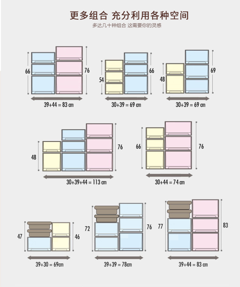 (注:抽屉柜尺寸叠加会有1cm左右减少)
