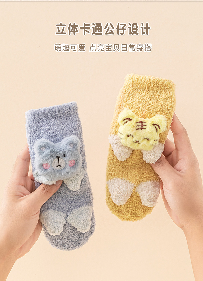 초두꺼운 미끄럼 방지 중간 길이 아기 양말 유아 남녀 어린이 양말 양말 세트 대형 인형 산호 벨벳 바닥 양말