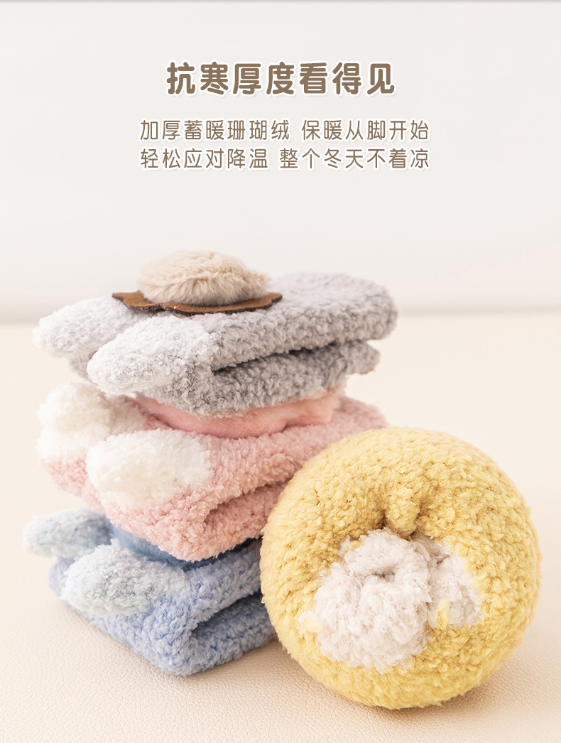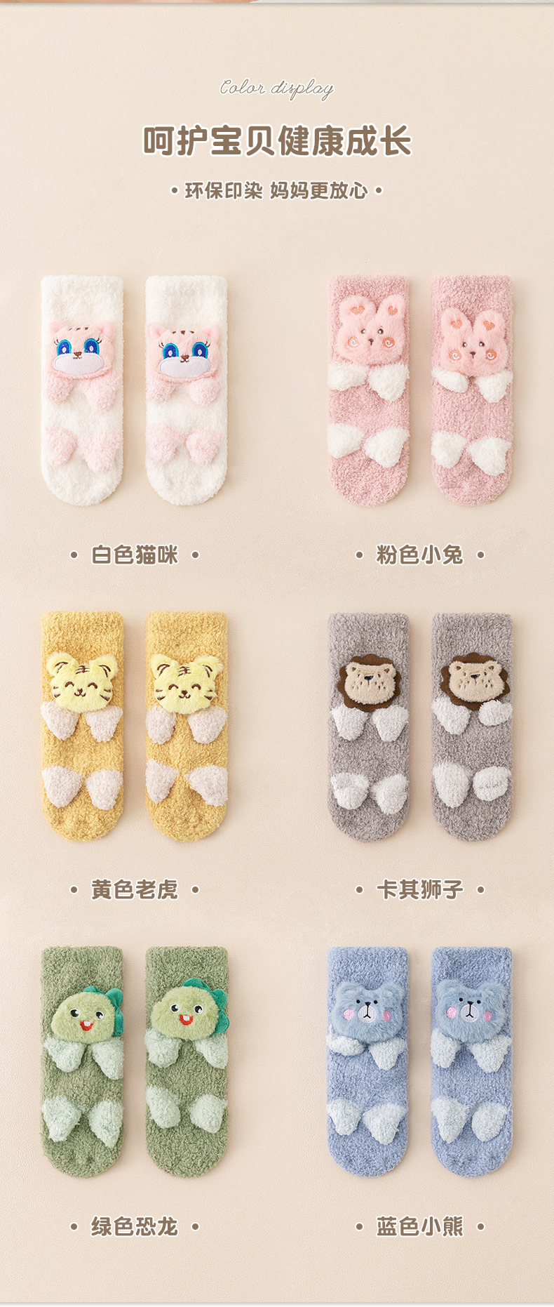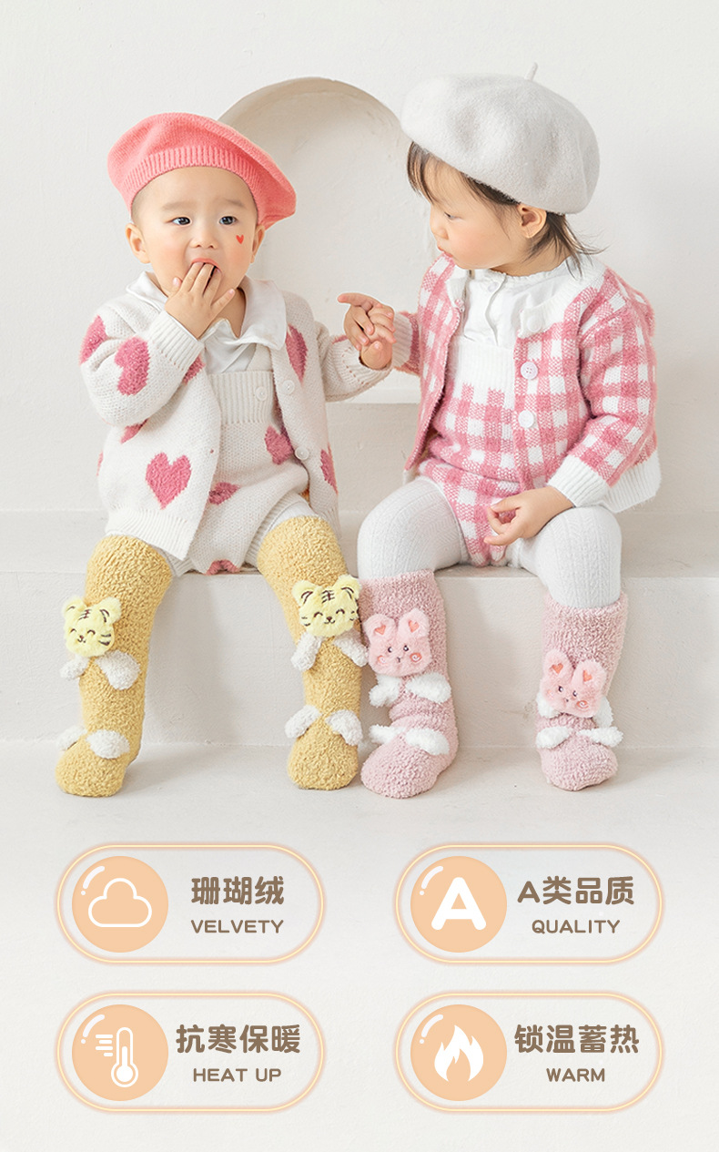 초두꺼운 미끄럼 방지 중간 길이 아기 양말 유아 남녀 어린이 양말 양말 세트 대형 인형 산호 벨벳 바닥 양말스토어 가기