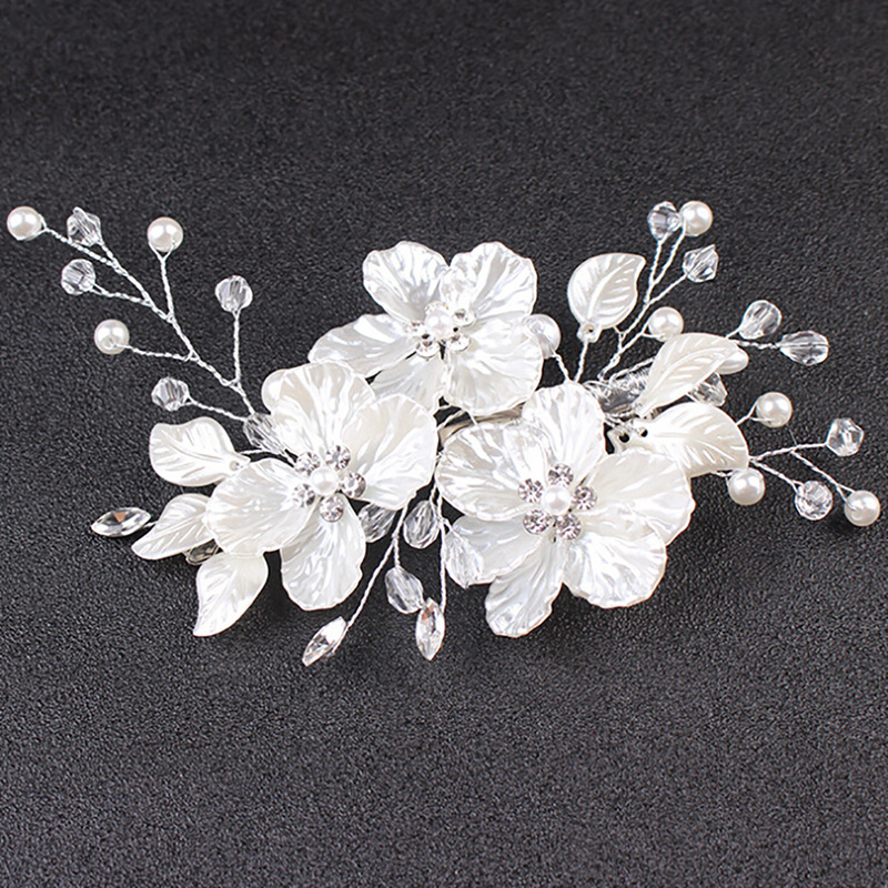 신부 웨딩 수제 크리스탈 꽃잎 진주 땋은 머리핀 머리 빗 머리 장식 웨딩 액세서리 로맨틱스토어 가기
