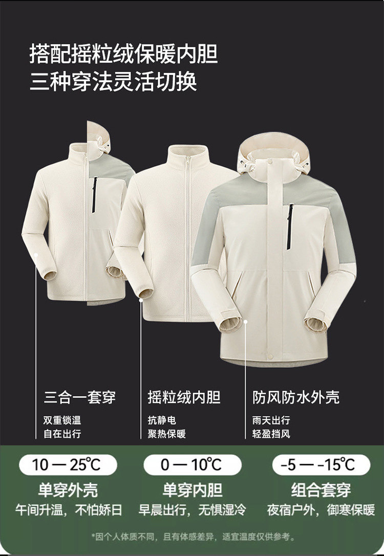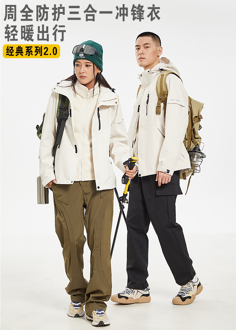 화이트 X Wo 같은 스타일 충전 의류 남성 3 대 1 충전 의류 여성 야외 방수 방풍 산 등반 여행 낚시 재킷스토어 가기