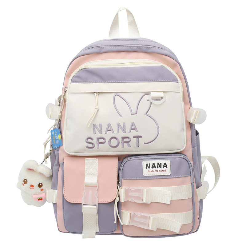 가을 2022 새로운 대비 컬러 프레피 스타일 배낭 부드러운 소녀 귀여운 한국 스타일 대용량 학생 책가방 배치