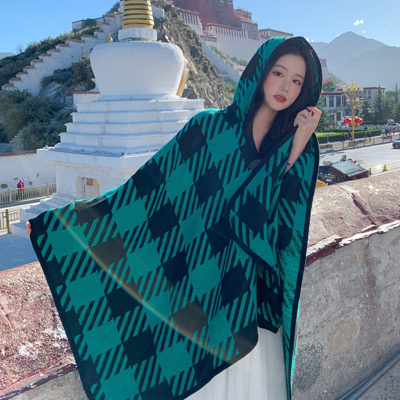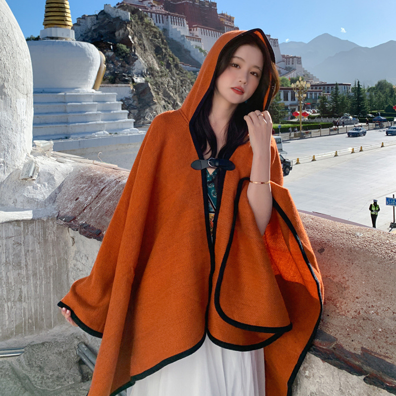 신장 티베트 여행 사진 목도리 여성의 가을과 겨울 모조 캐시미어 버튼 포장 케이프 망토 두꺼운 따뜻한 스카프스토어 가기