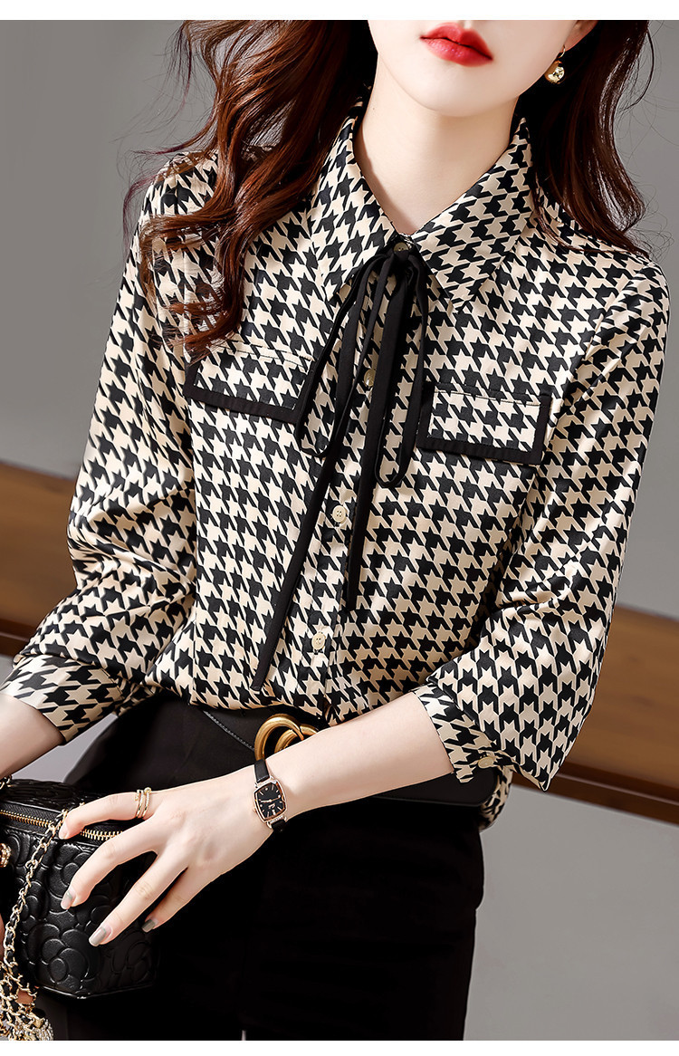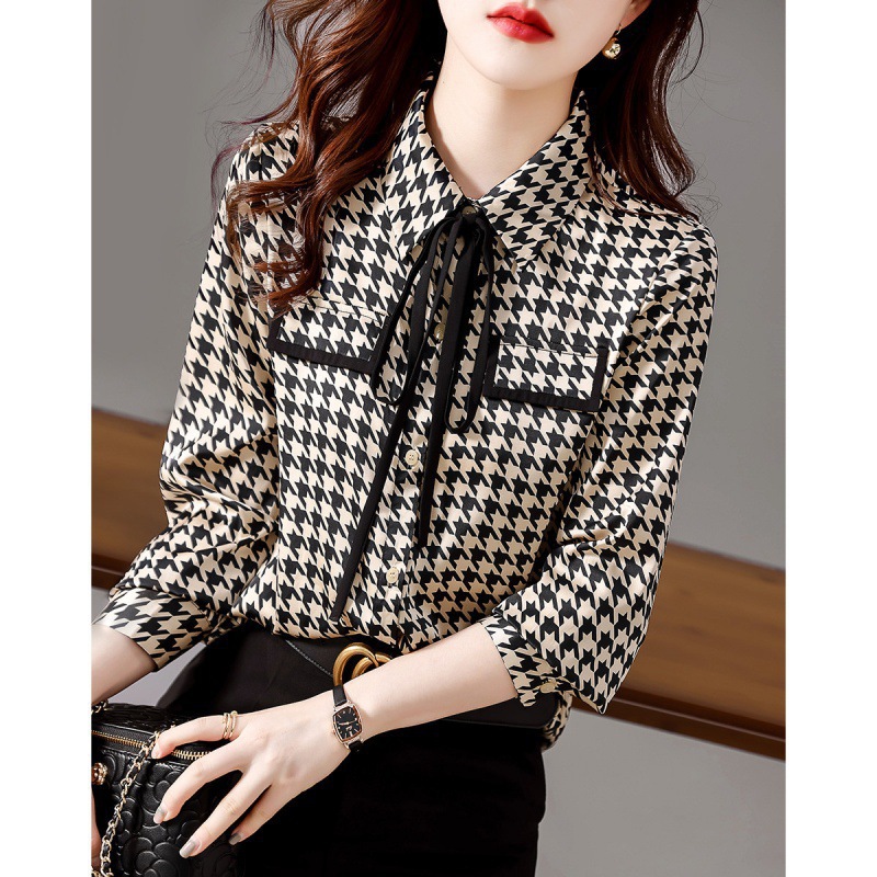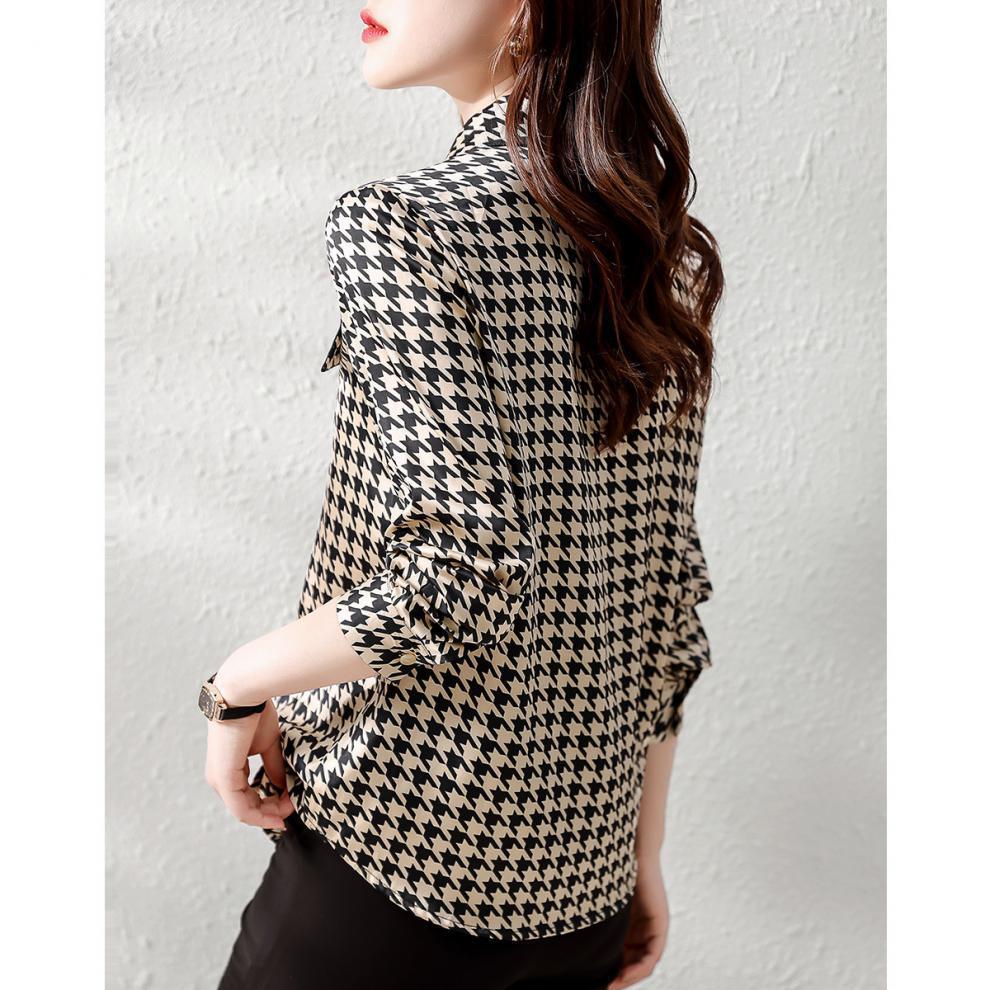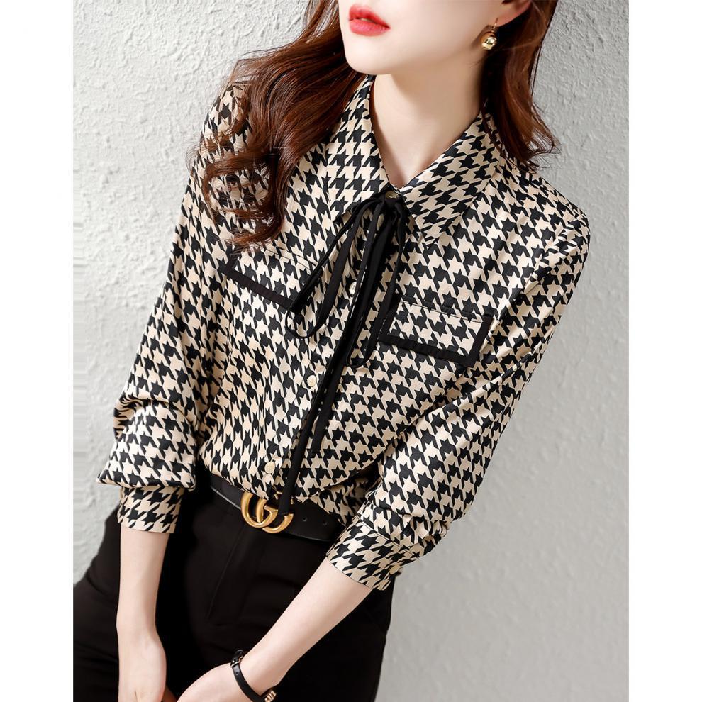 대외 무역 가을 옷 2022 새로운 가을 레이스 업 우아한 격자 무늬 셔츠 여성용 긴 소매 탑 한국어 버전스토어 가기