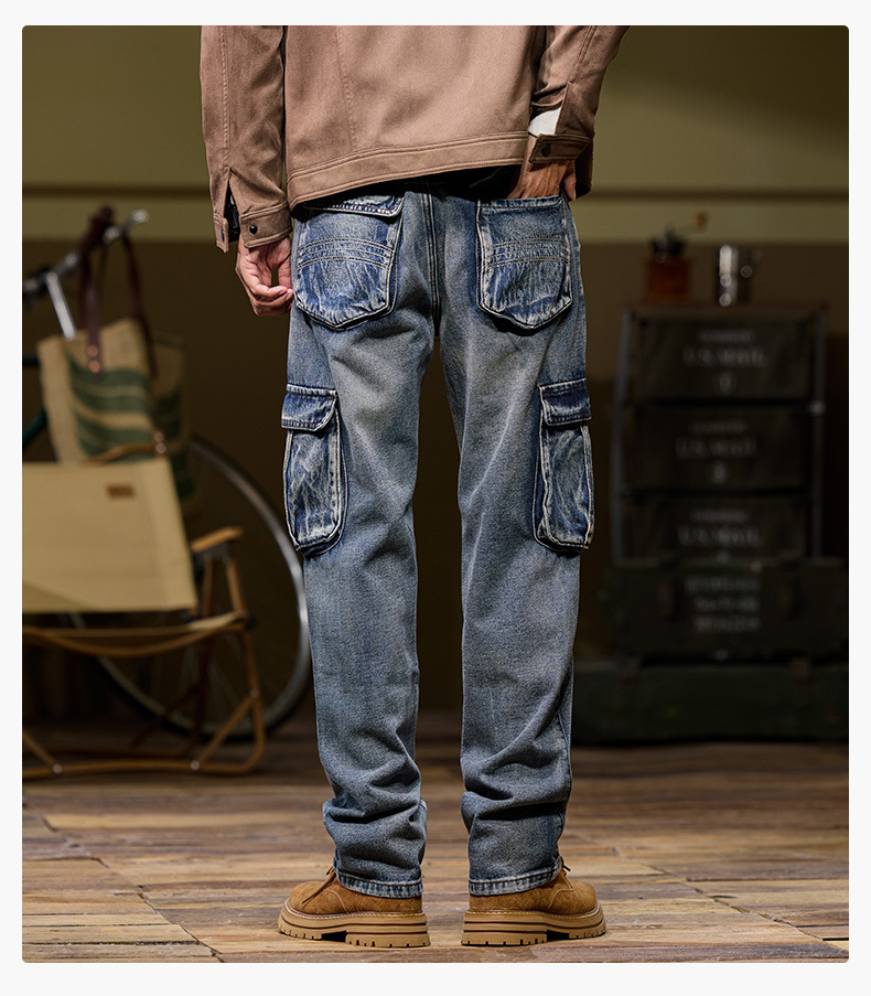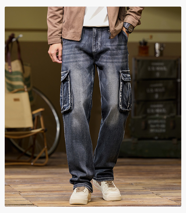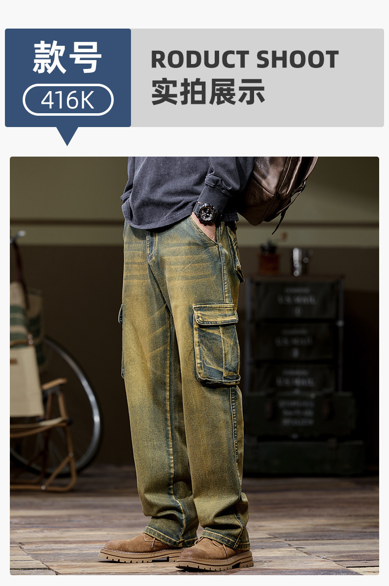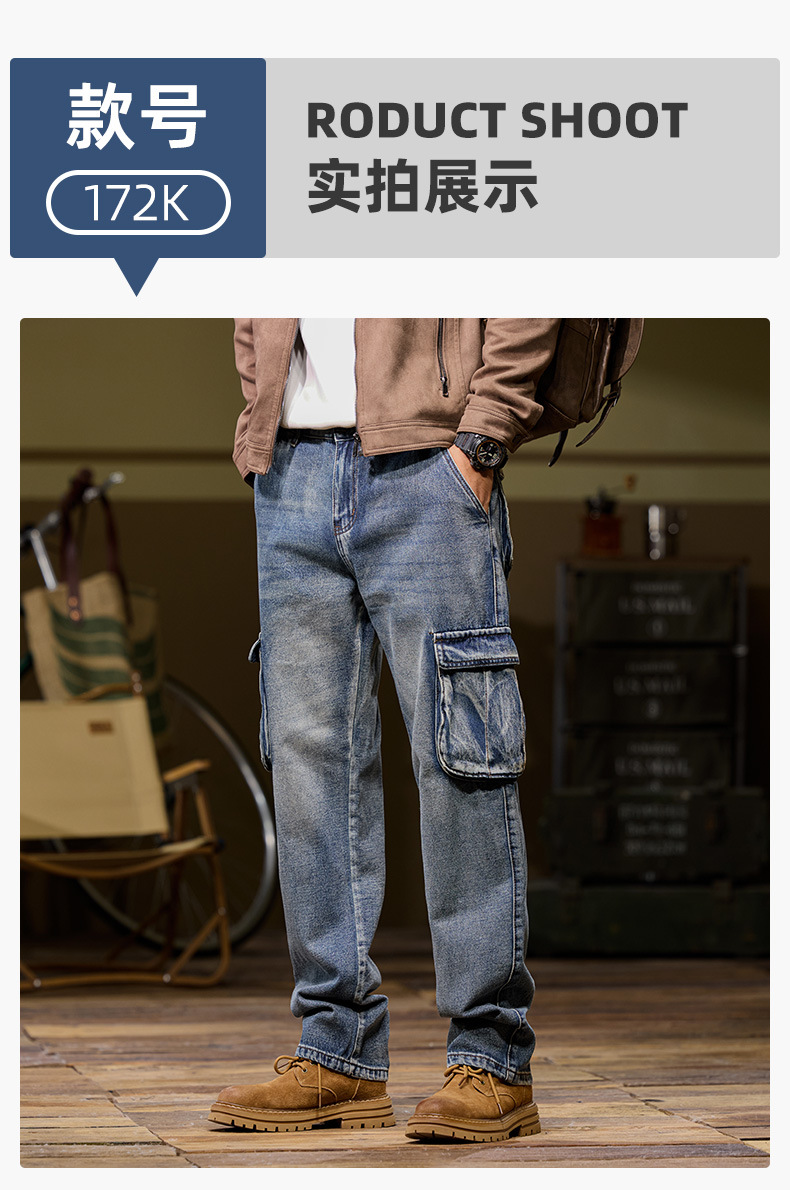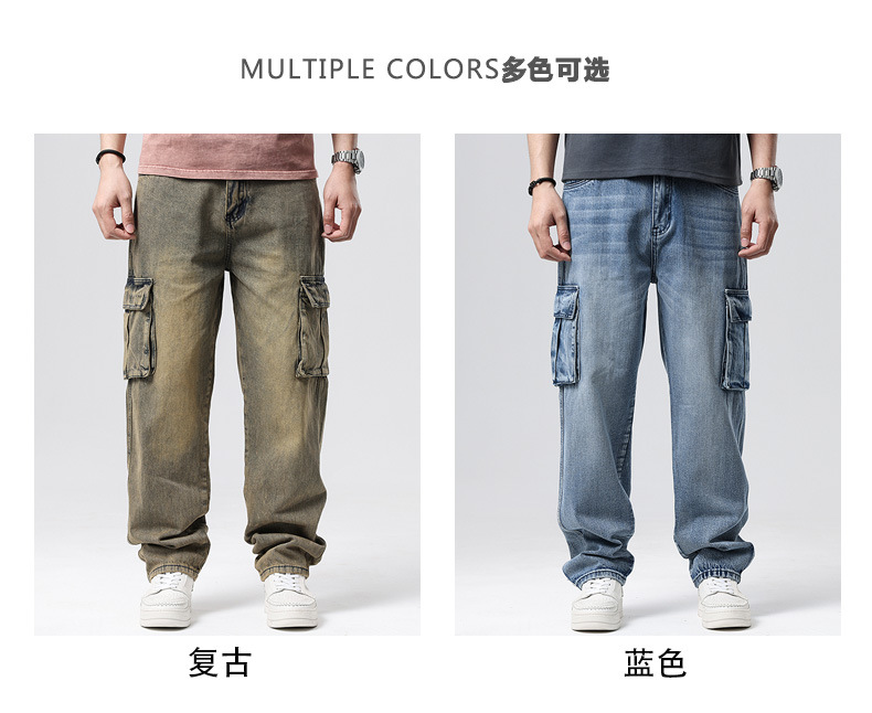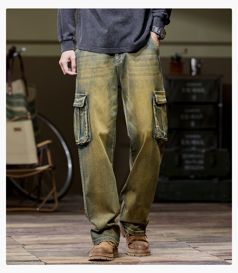 대외 무역 아미 카지 힙합 바지 남자의 향수 레트로 멀티 포켓 뚱뚱한 남자의 스케이트 보드 청바지 남자의 유럽과 미국스토어 가기