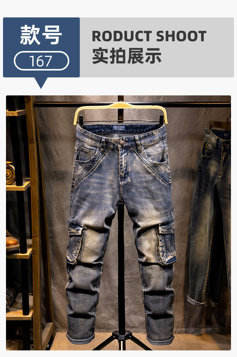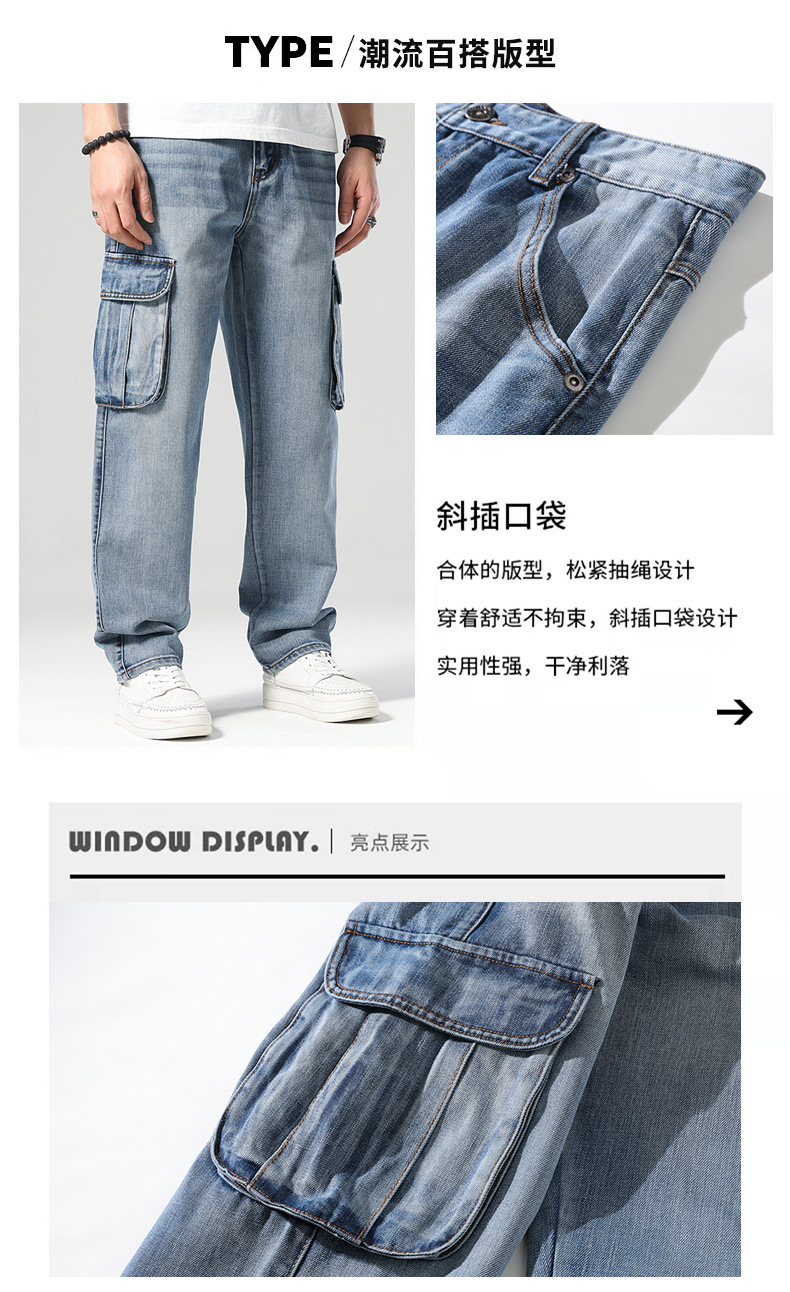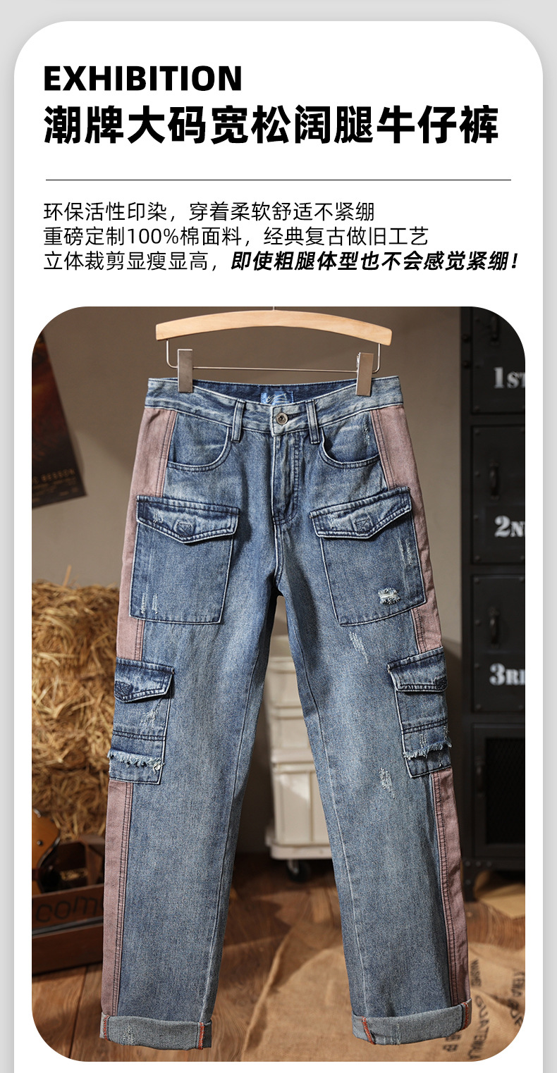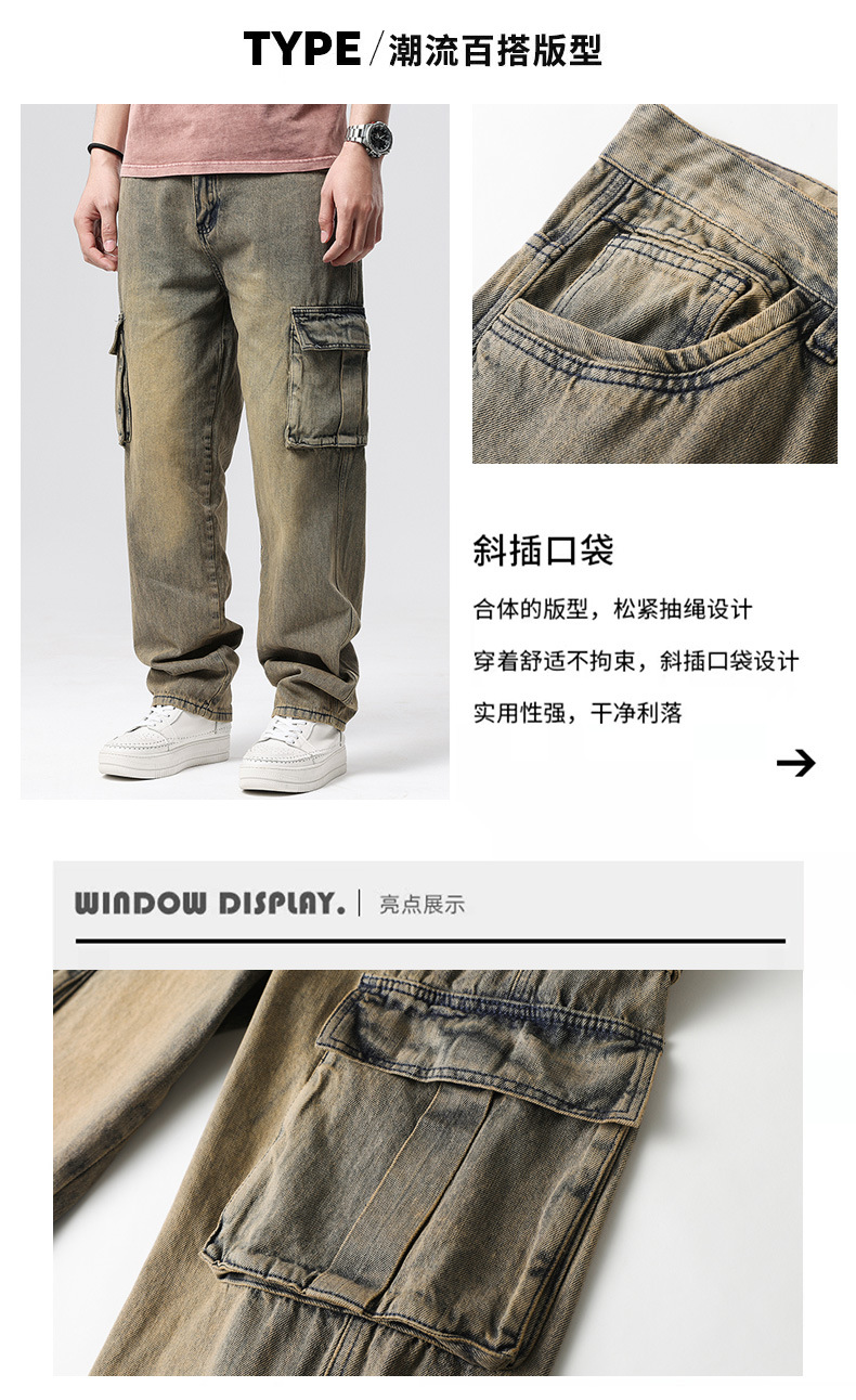 대외 무역 아미 카지 힙합 바지 남자의 향수 레트로 멀티 포켓 뚱뚱한 남자의 스케이트 보드 청바지 남자의 유럽과 미국스토어 가기