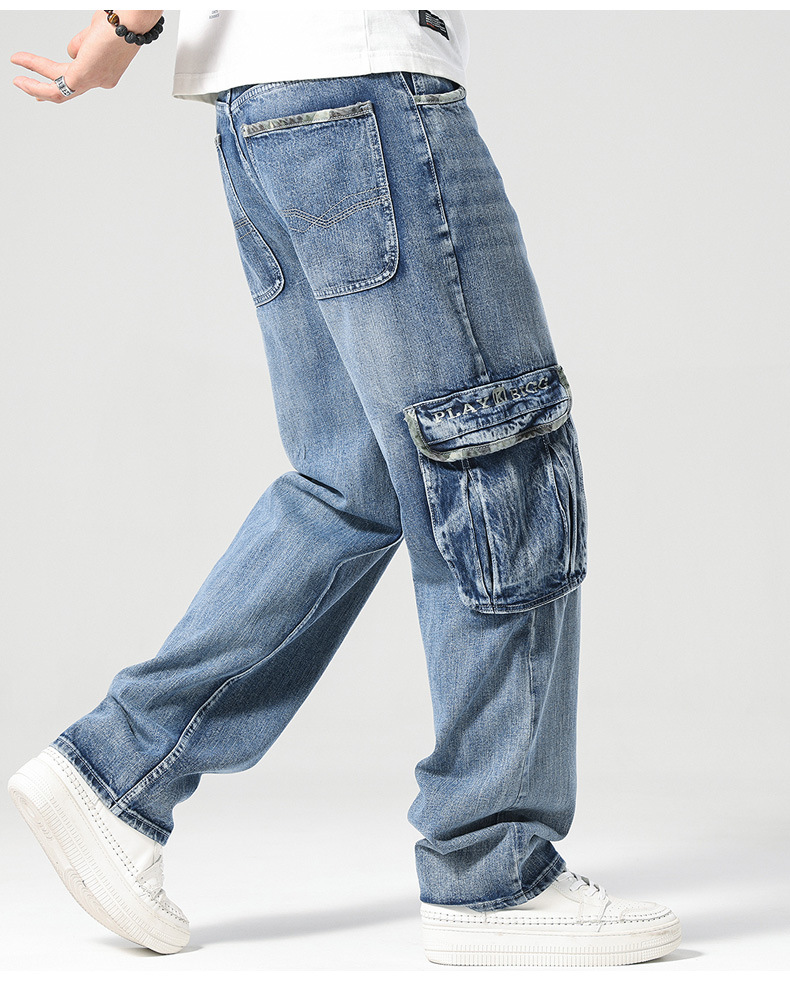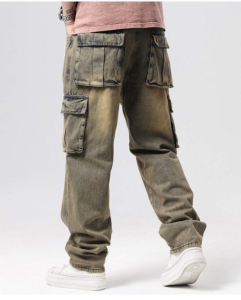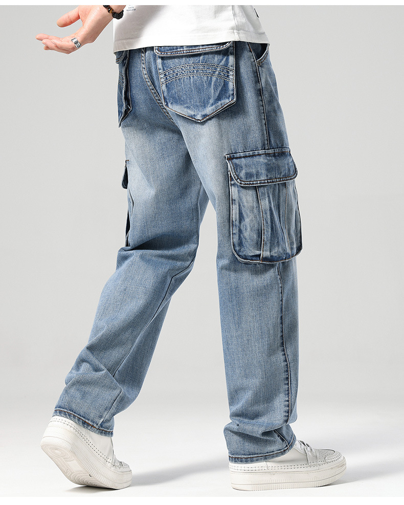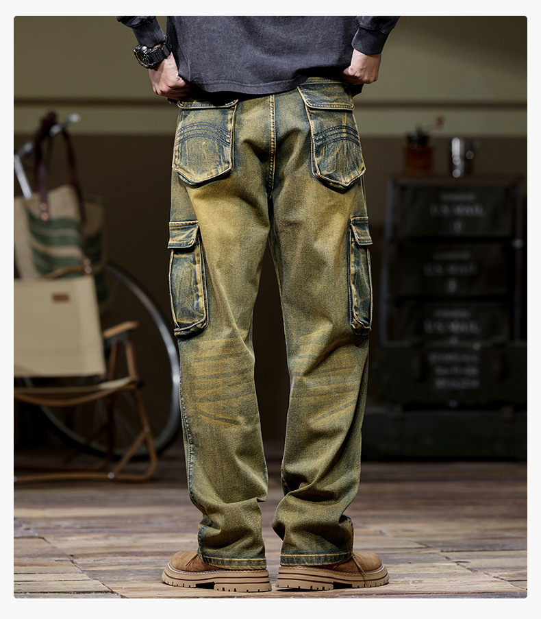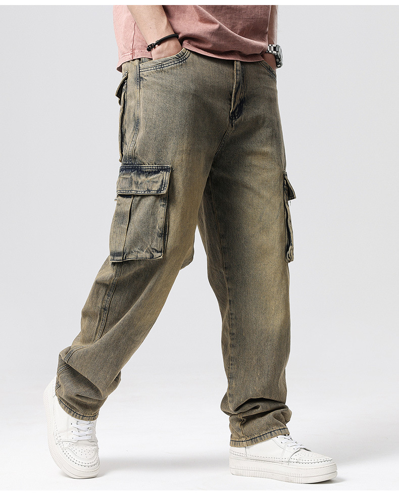 대외 무역 아미 카지 힙합 바지 남자의 향수 레트로 멀티 포켓 뚱뚱한 남자의 스케이트 보드 청바지 남자의 유럽과 미국