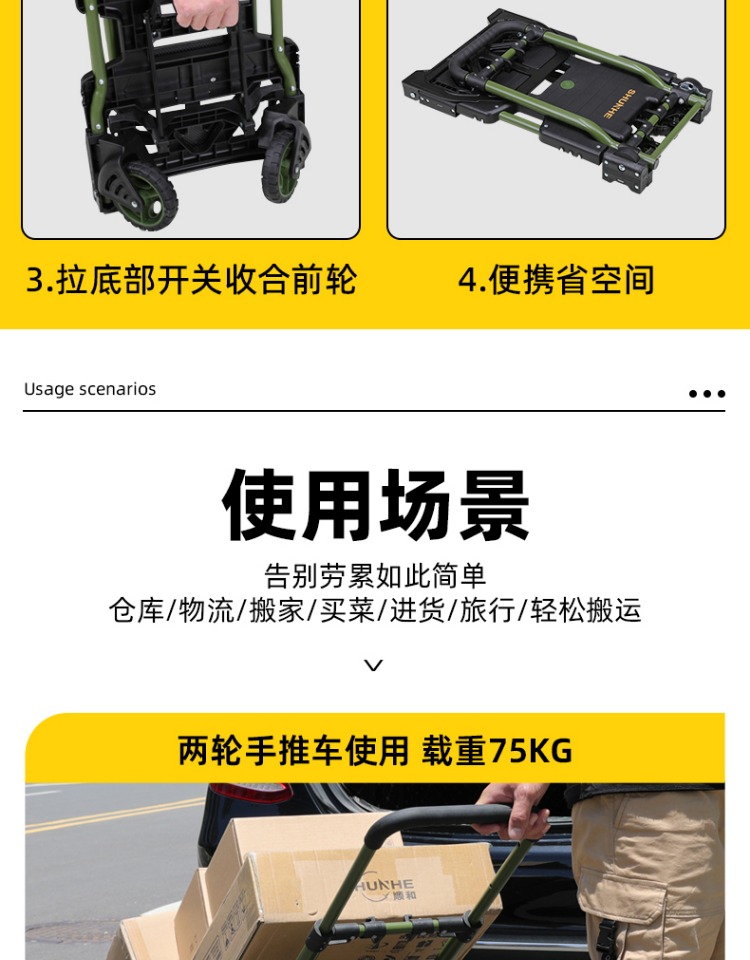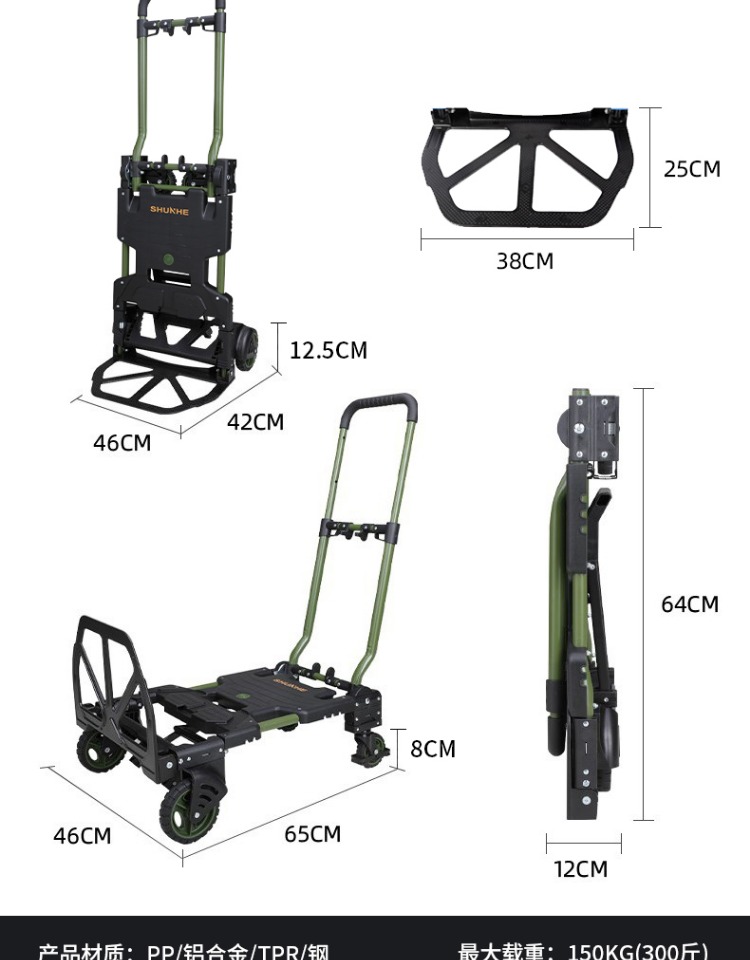 Shunhe 접이식 트롤리 핸드 트롤리 트레일러 쇼핑 트롤리 휴대용 평판 트롤리 트롤리 트롤리 트럭