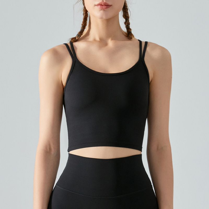 더블 얇은 어깨 스트랩 스포츠 속옷 통합 고정 가슴 패드 요가 아름다운 등 브래지어 고탄성 캐미솔 피트니스웨어