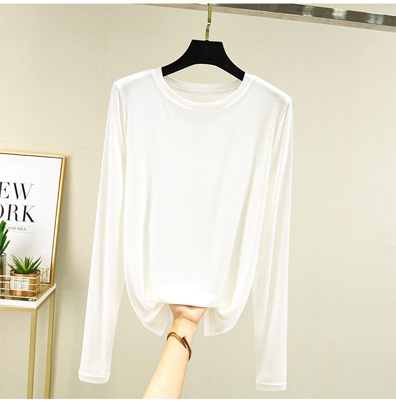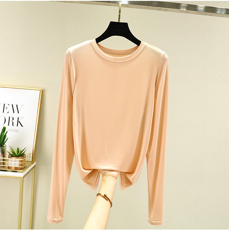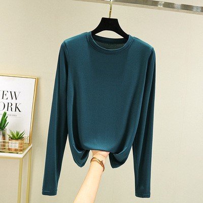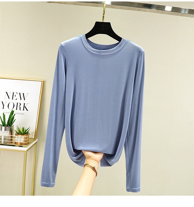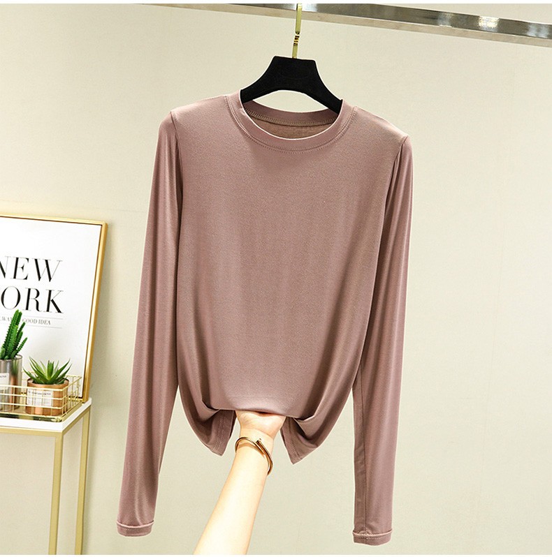 모달 베이스 셔츠 여성의 봄과 가을 라운드 넥 티셔츠 느슨한 한국 스타일 서양 스타일 얇은 모든 매치 긴팔 플러스 사이즈 슬림 한 봐스토어 가기