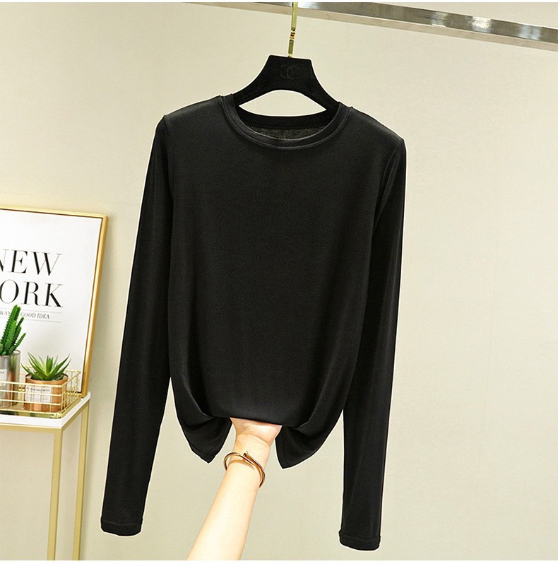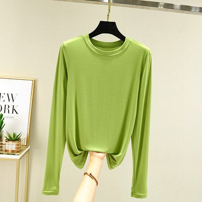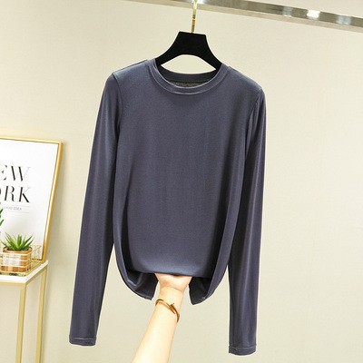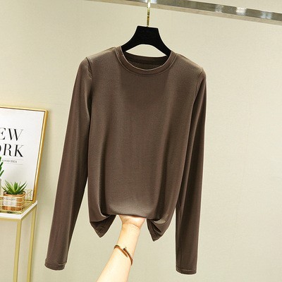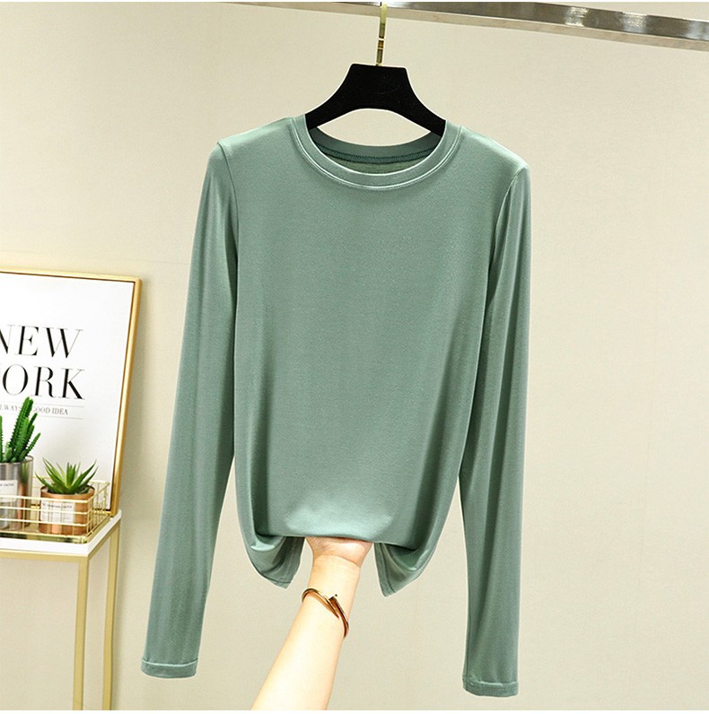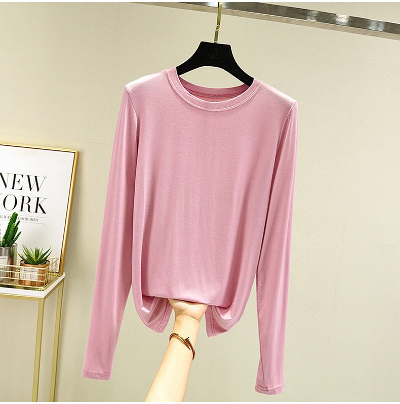 모달 베이스 셔츠 여성의 봄과 가을 라운드 넥 티셔츠 느슨한 한국 스타일 서양 스타일 얇은 모든 매치 긴팔 플러스 사이즈 슬림 한 봐
