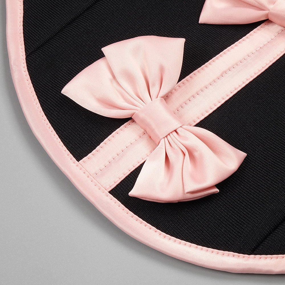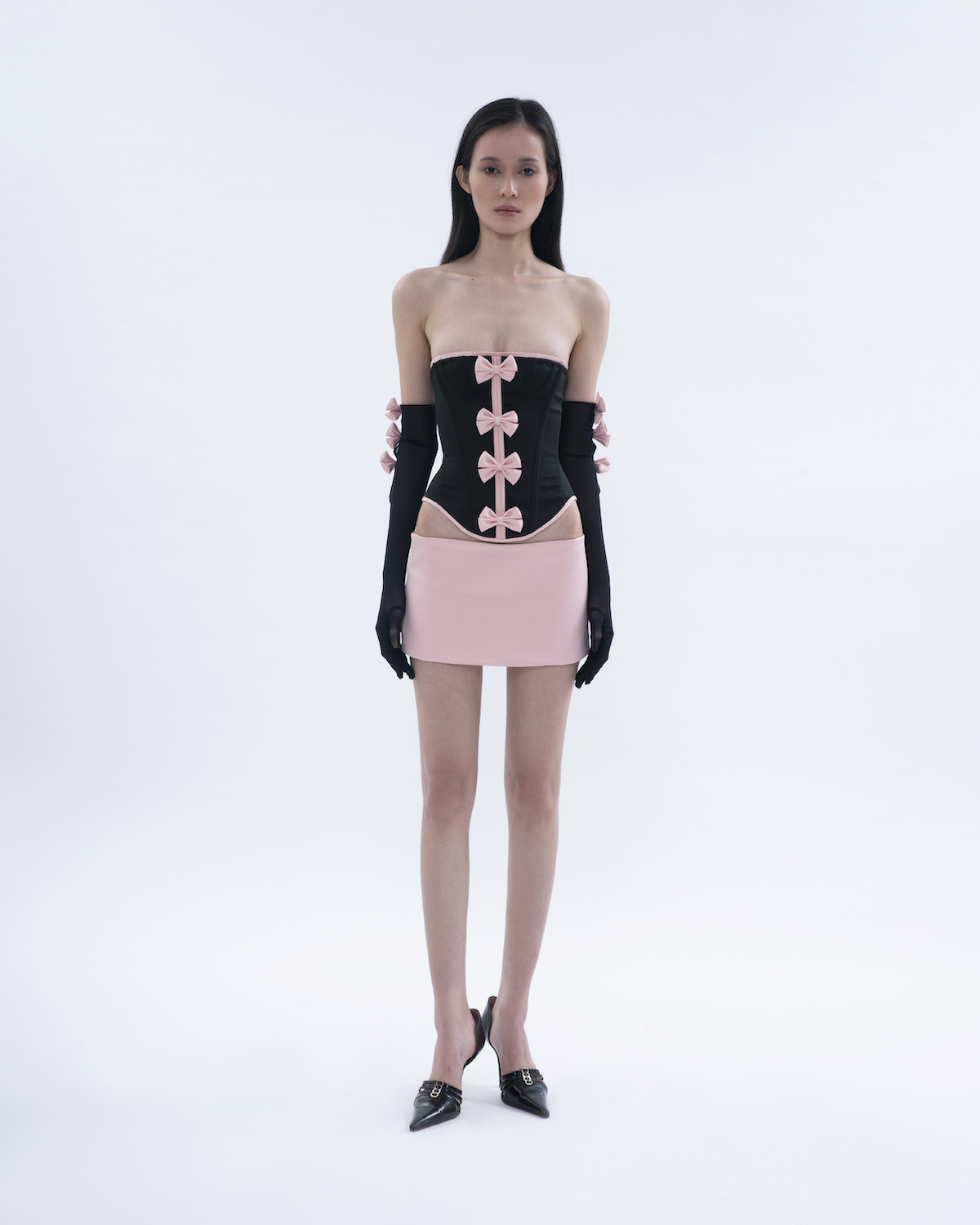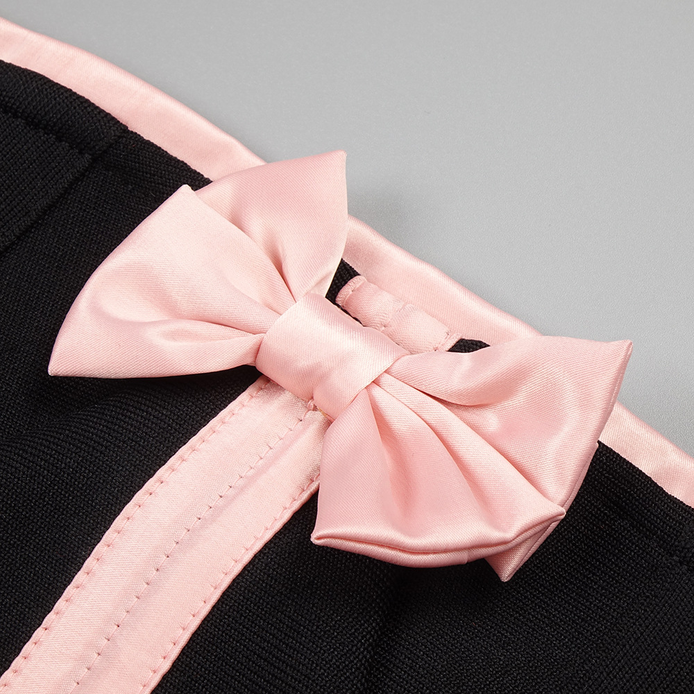 아마존 핑크 배색 리본 튜브탑 미니스커트 장갑 세트 섹시한 여성 유럽풍 4종 세트 우아한 출근룩
