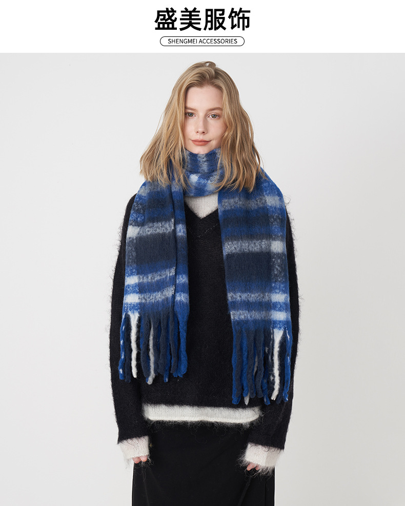 2022 새로운 유럽 및 미국 대외 무역 프랑스 클래식 레트로 캐시미어 격자 무늬 스카프 여성용 겨울 따뜻한 스카프 도매스토어 가기