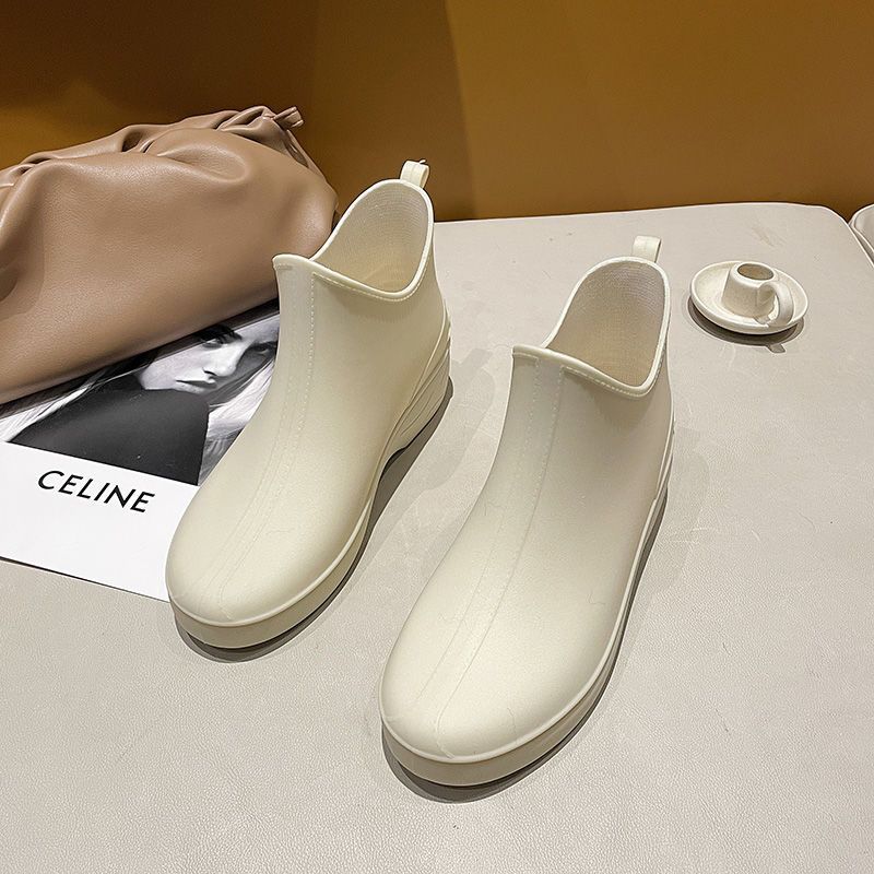 일본 패션 짧은 비 신발 여자의 겨울 방한 기모 따뜻한 장화 학생 귀여운 겉옷 물 신발 고무 신발