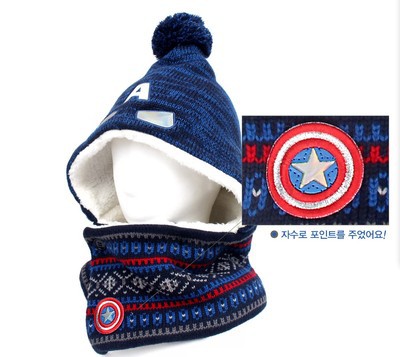 한 윙하우스 어린이/초등학생 캡틴 아메리카 모자와 목 통합 기모 따뜻한 세트 재고스토어 가기