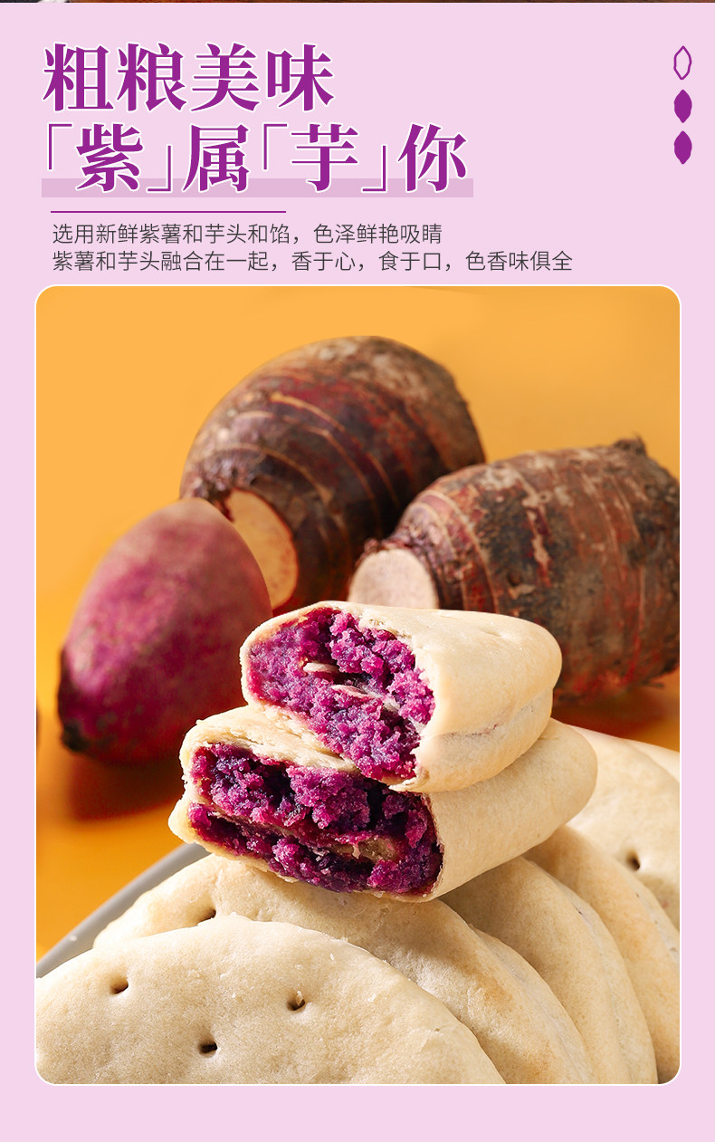 비비자 퍼플 고구마 타로 진흙 케이크 빵 전체 상자 아침 식사 간식 순위 카드 간식 레저 지방 식품 도매스토어 가기