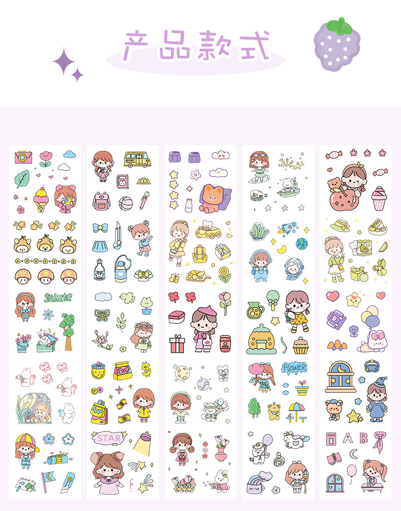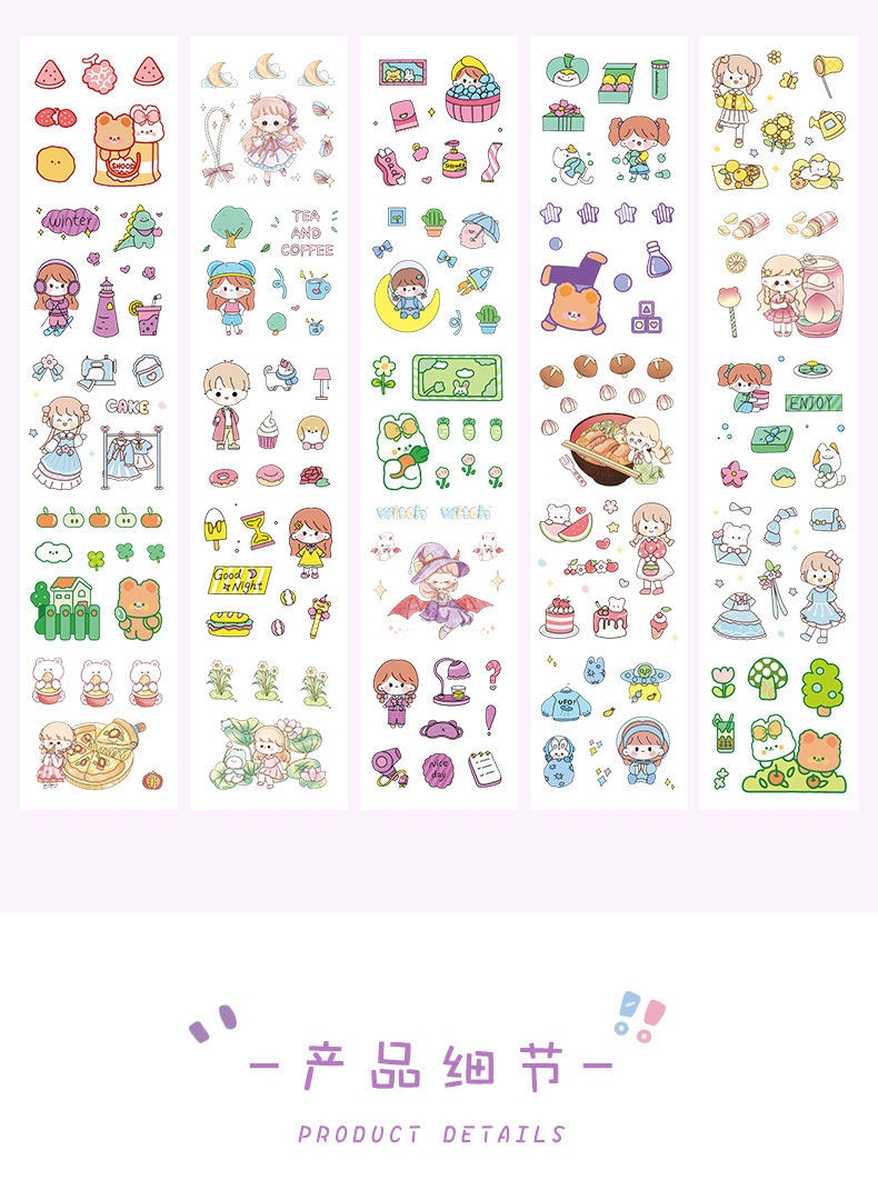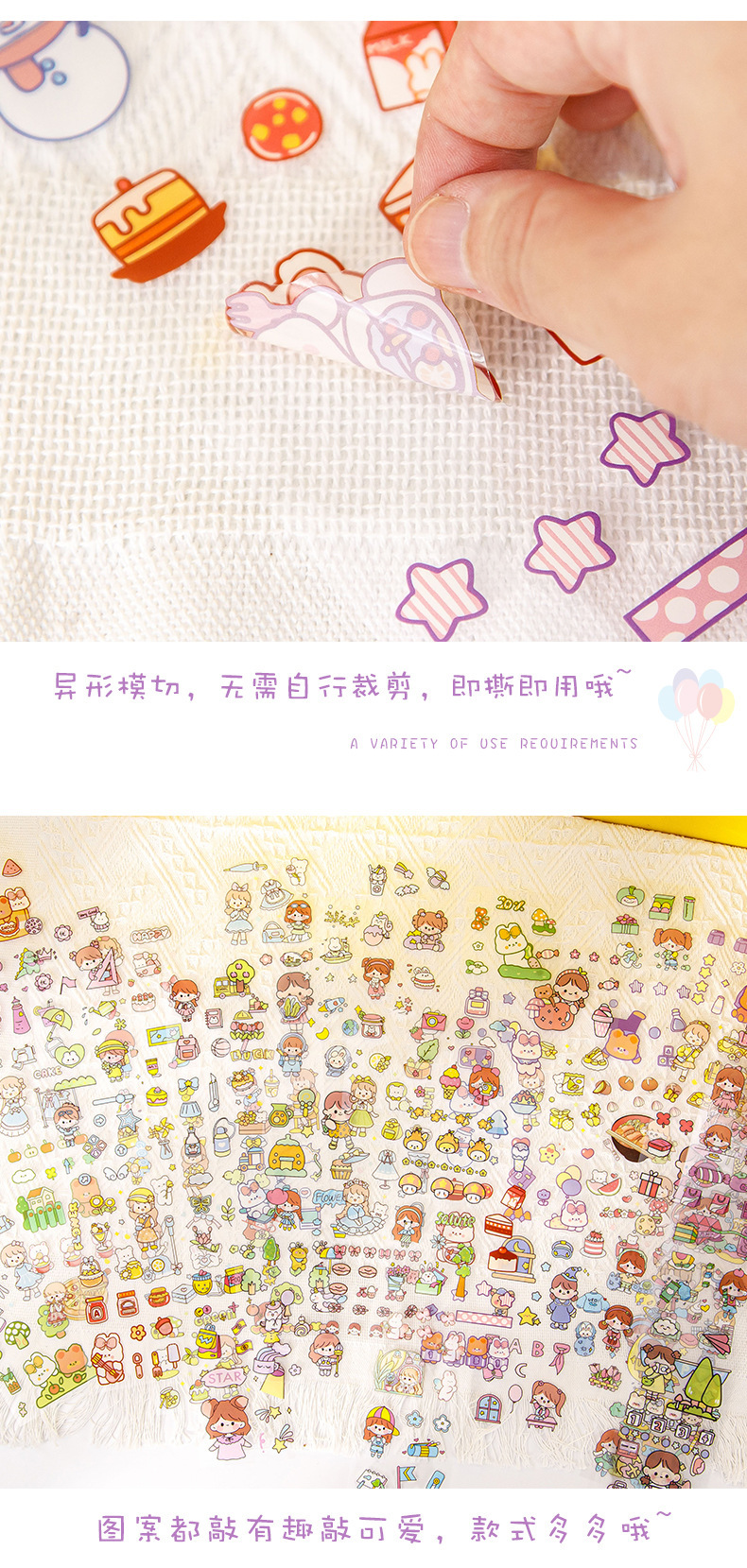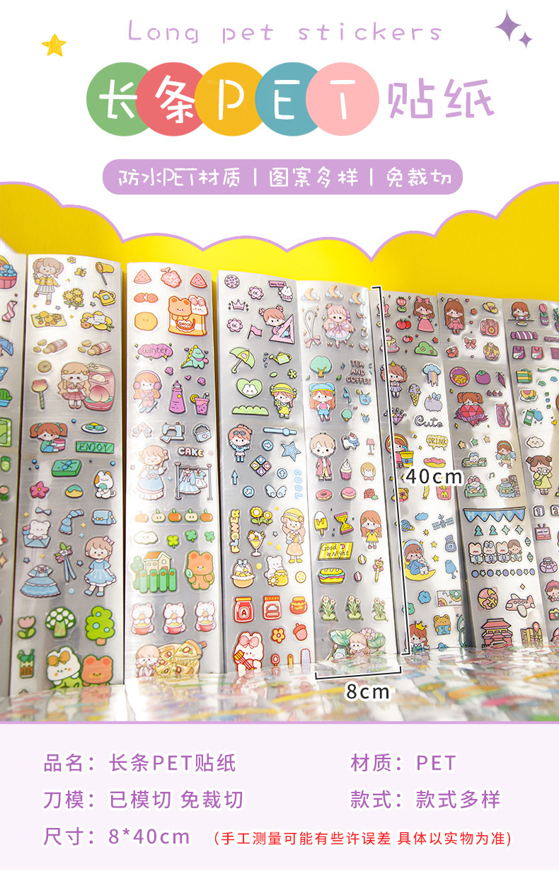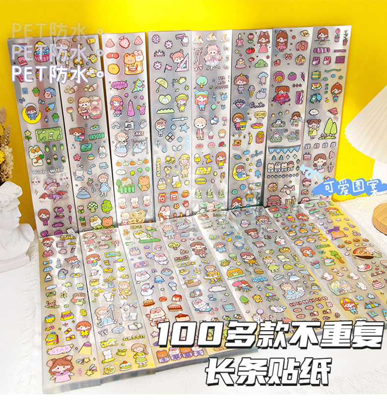 학생 손 계정 긴 PET 스티커 일본어와 한국어 스타일 귀여운 만화 방수 장식 재료 손 계정 스티커 가방스토어 가기