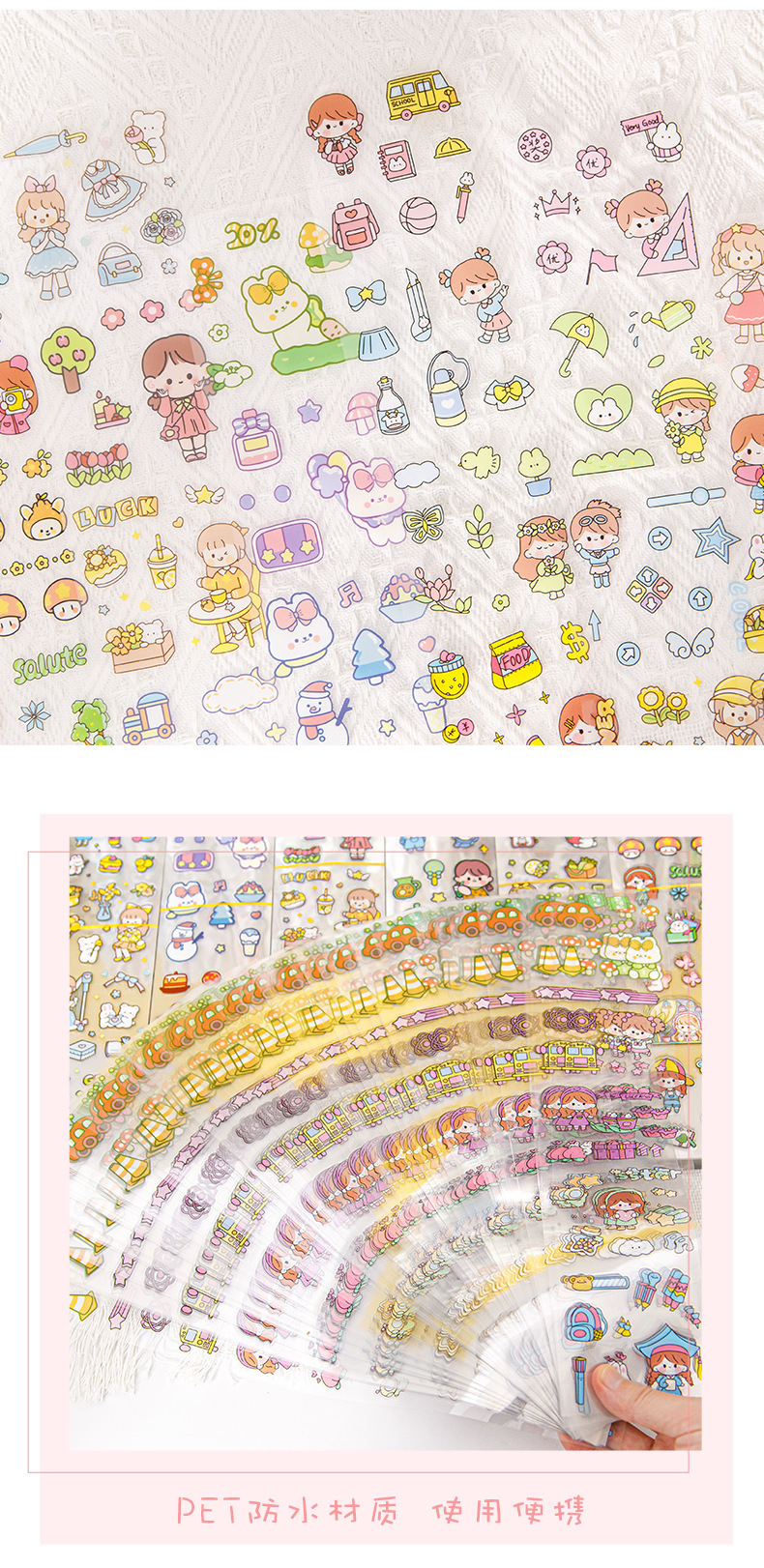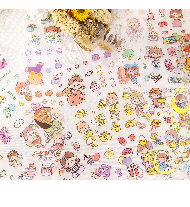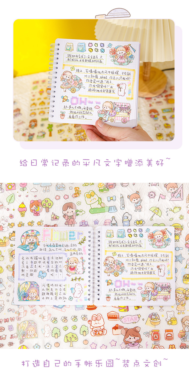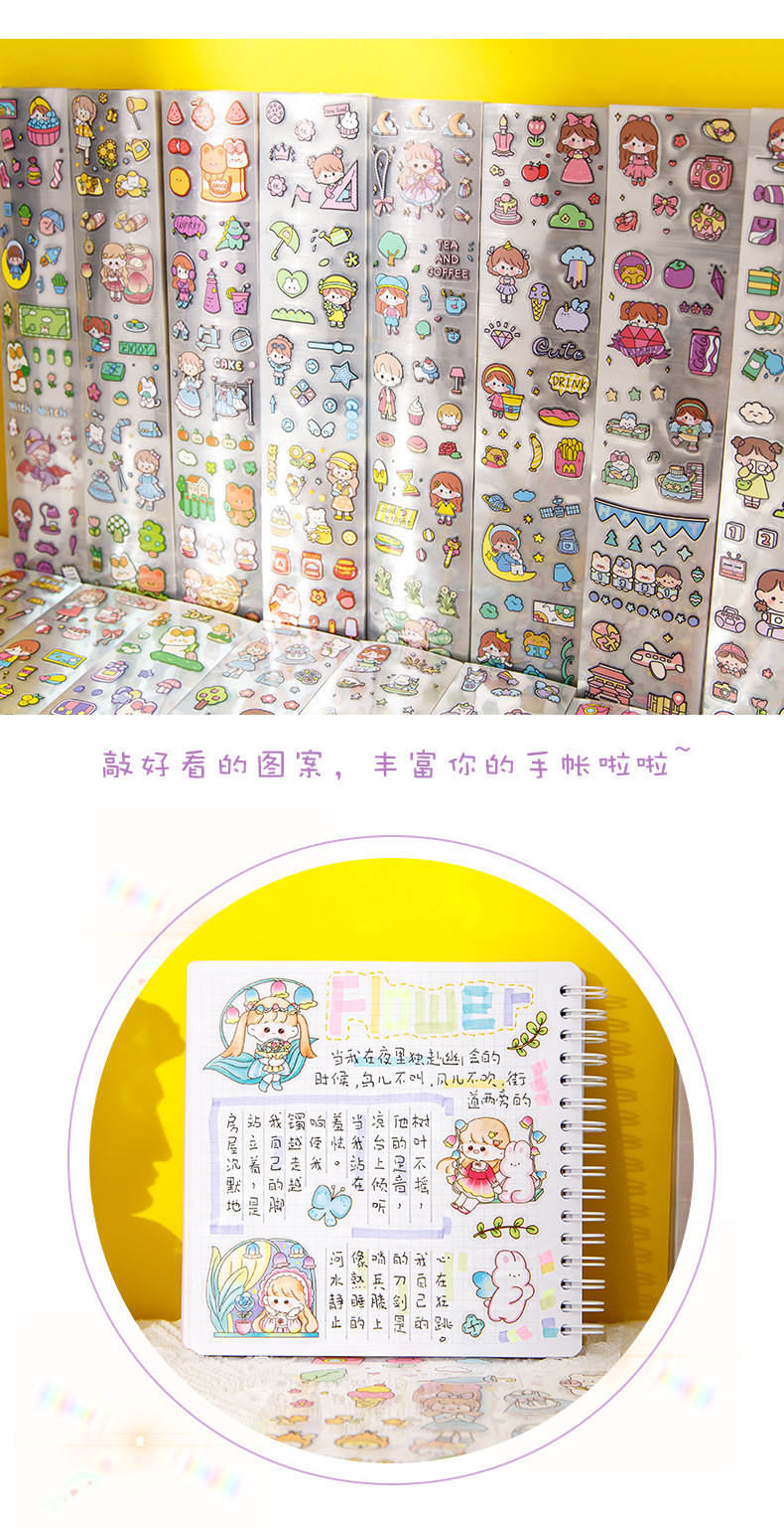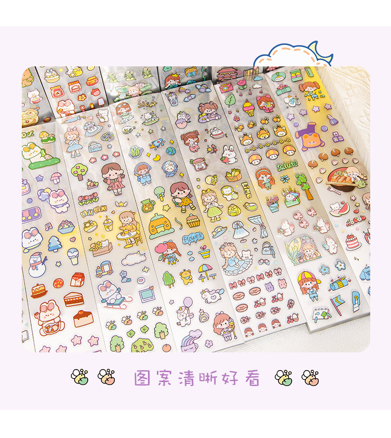학생 손 계정 긴 PET 스티커 일본어와 한국어 스타일 귀여운 만화 방수 장식 재료 손 계정 스티커 가방스토어 가기