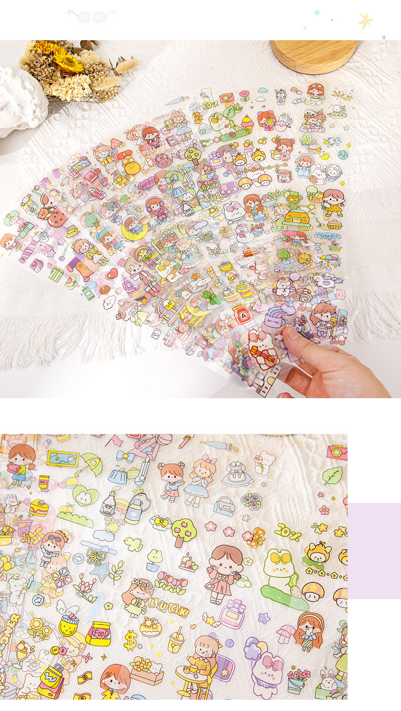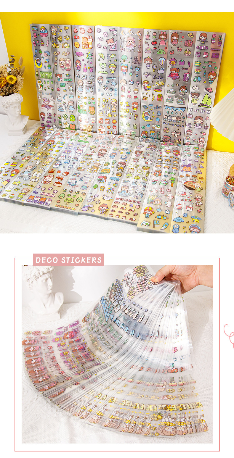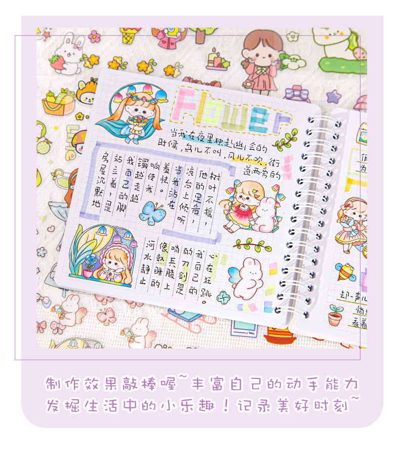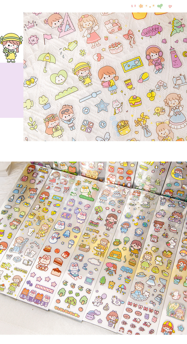 학생 손 계정 긴 PET 스티커 일본어와 한국어 스타일 귀여운 만화 방수 장식 재료 손 계정 스티커 가방스토어 가기