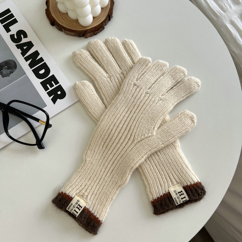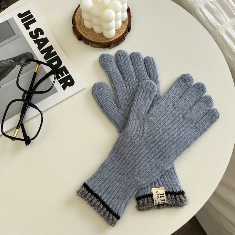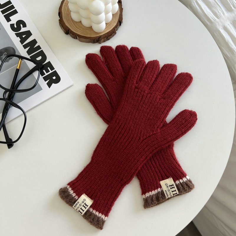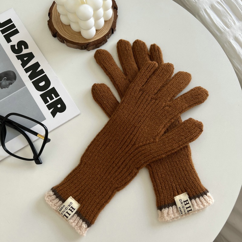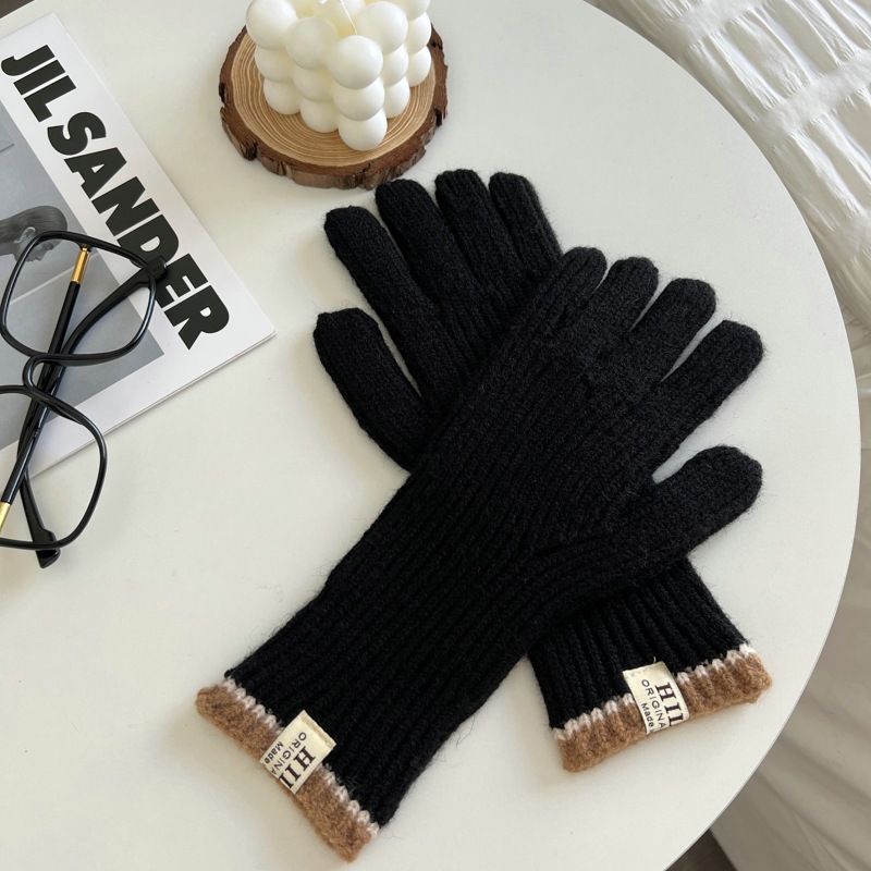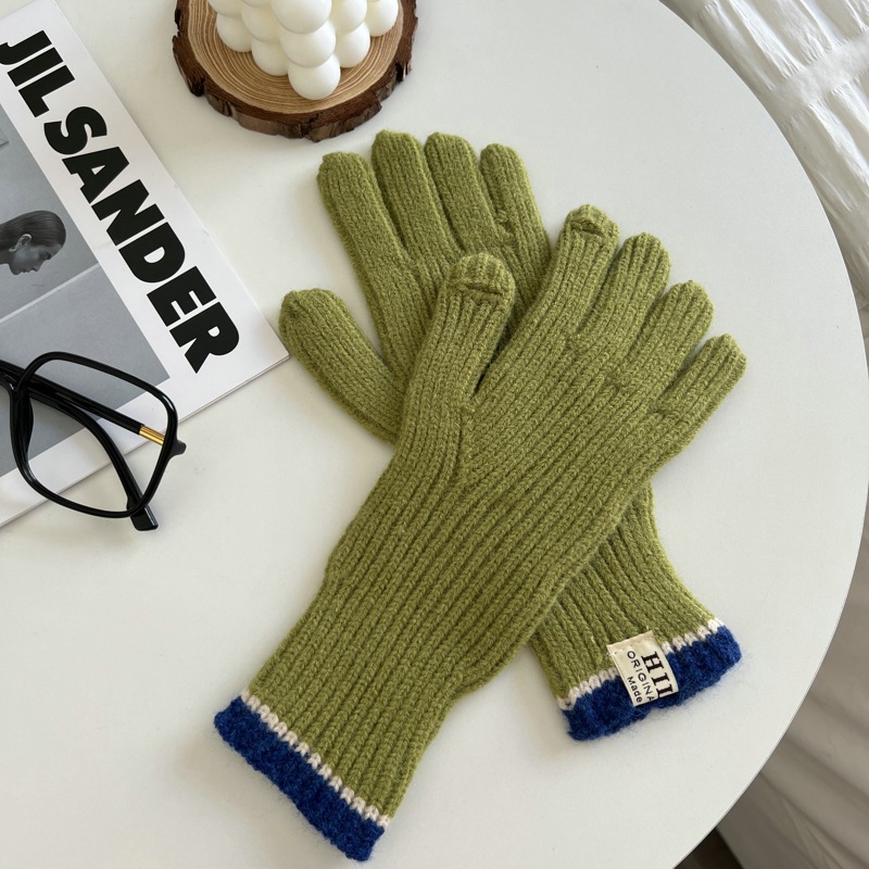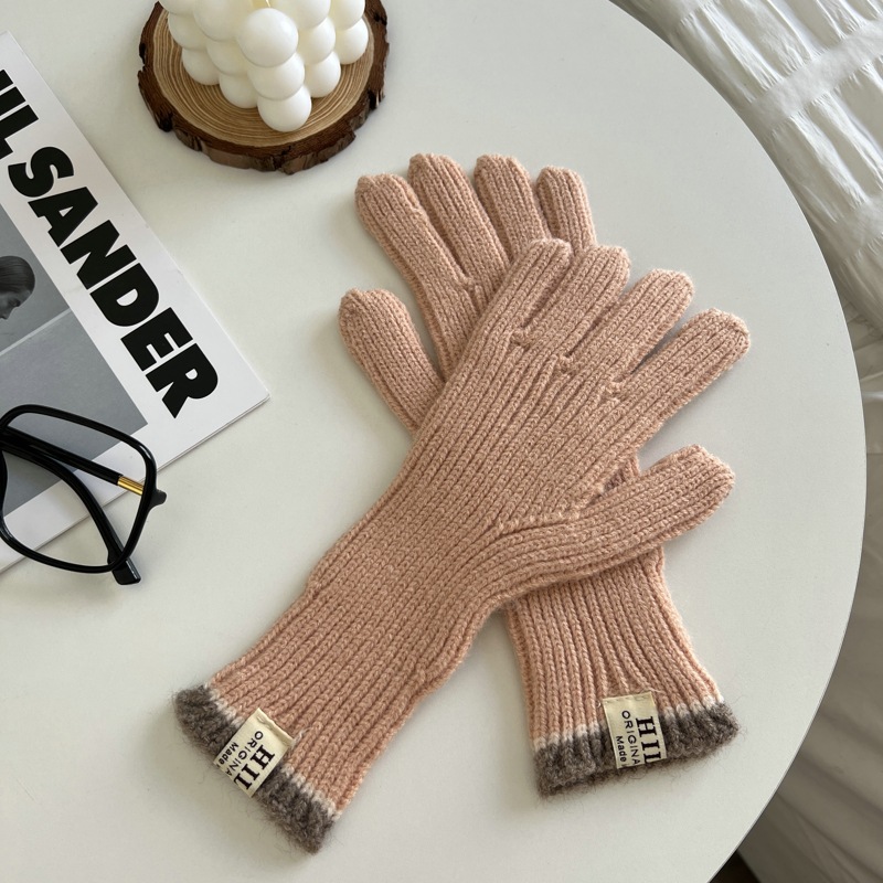한국 패션 단색 장갑 여성의 가을과 겨울 모든 경기 긴 니트 울 터치 스크린 다섯 손가락 패션 야외 승마 따뜻한