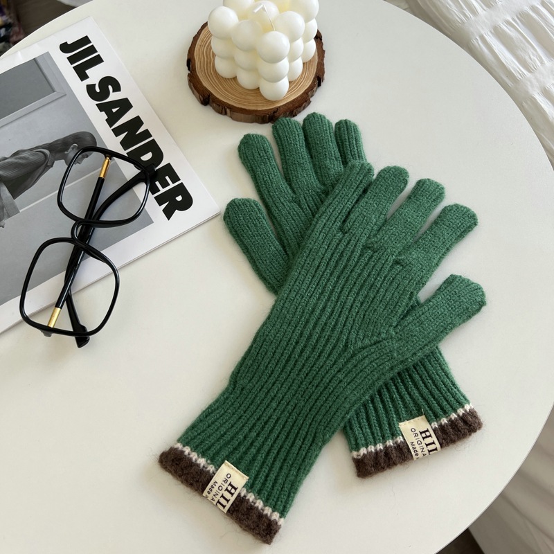한국 패션 단색 장갑 여성의 가을과 겨울 모든 경기 긴 니트 울 터치 스크린 다섯 손가락 패션 야외 승마 따뜻한스토어 가기
