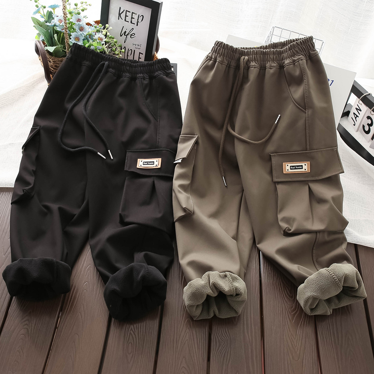 2025冬季新品儿童大口袋加绒工装保暖裤