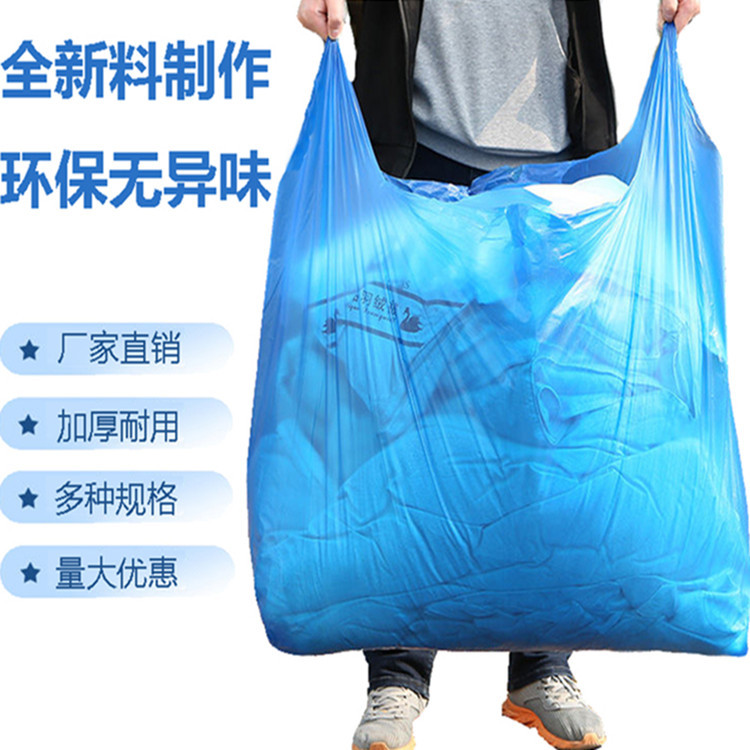 파란색 플라스틱 조끼형 쇼핑백, 두꺼운 의류 포장백, 손잡이형 쓰레기봉투, 가정용 조끼형