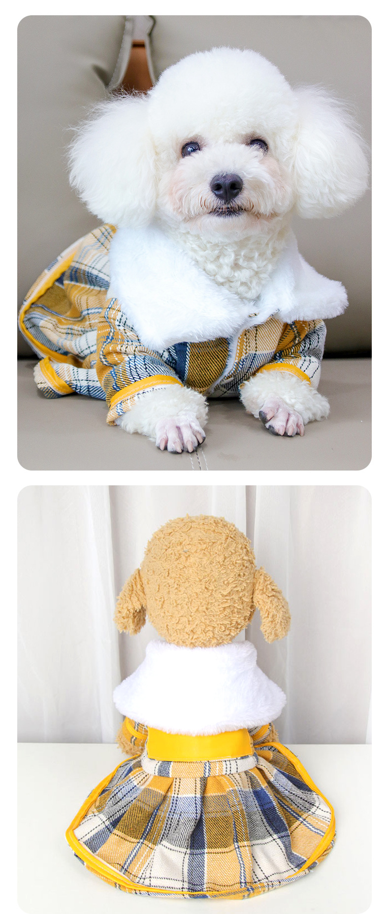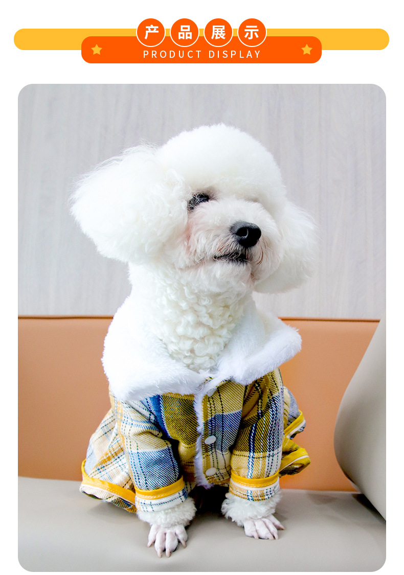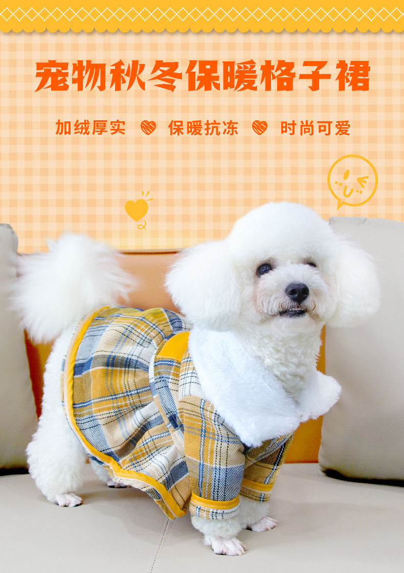 공장 직판 애완동물 옷 가을 겨울 따뜻한 플러스벨벳 강아지 체크무늬 스커트 고양이 방한복 도매스토어 가기