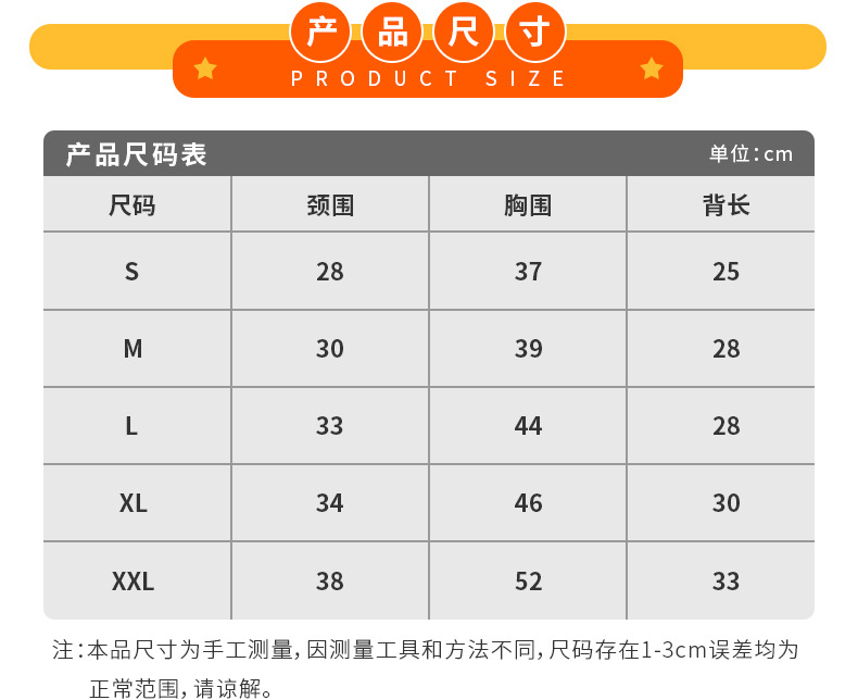 • XXL (목 둘레 38cm 가슴 둘레 52cm 등 길이 33cm)