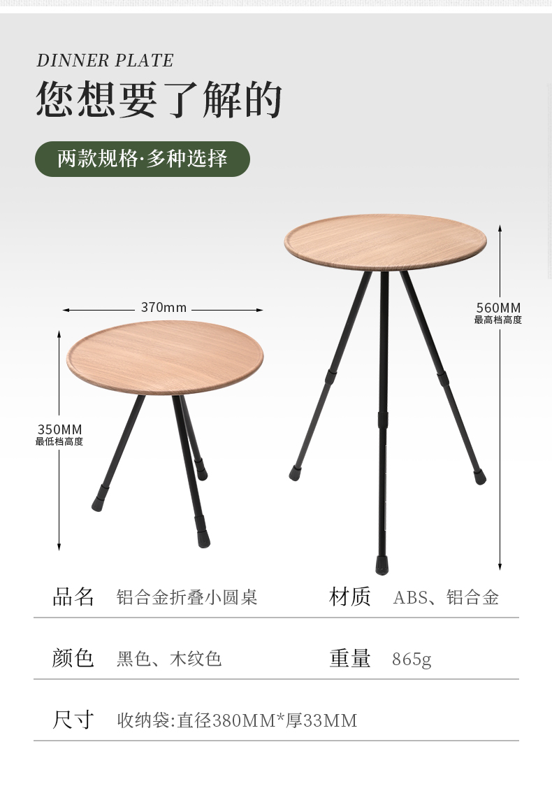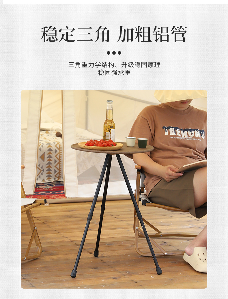 야외 캠핑 작은 원형 테이블 삼각형 브래킷 디스크 테이블 들어 올릴 수있는 휴대용 요리 테이블 알루미늄 합금 접이식 원형 테이블스토어 가기