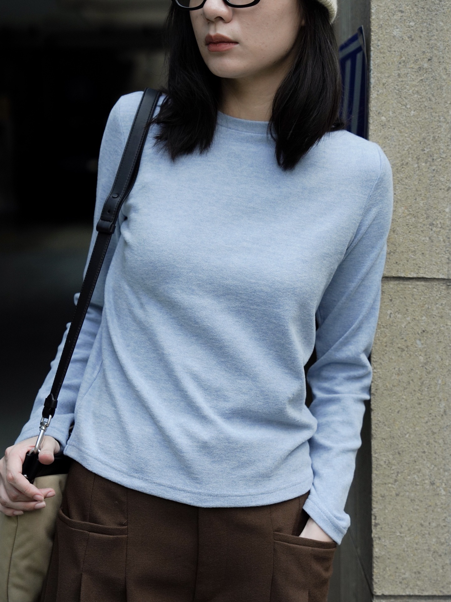겨울 새로운 한국 스타일 심플 스타일 기본 라운드 넥 티셔츠 느슨한 슬리밍 따뜻한베이스 긴 소매 탑 여성용 두꺼운스토어 가기