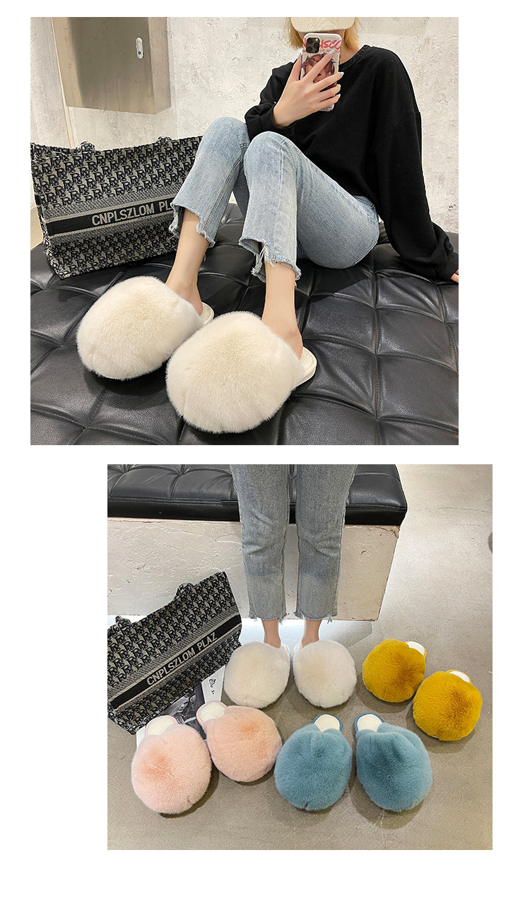 2025 가을 겨울 신상 여성용 털 덮인 반슬리퍼, 귀엽고 푹신한 털 슬리퍼스토어 가기