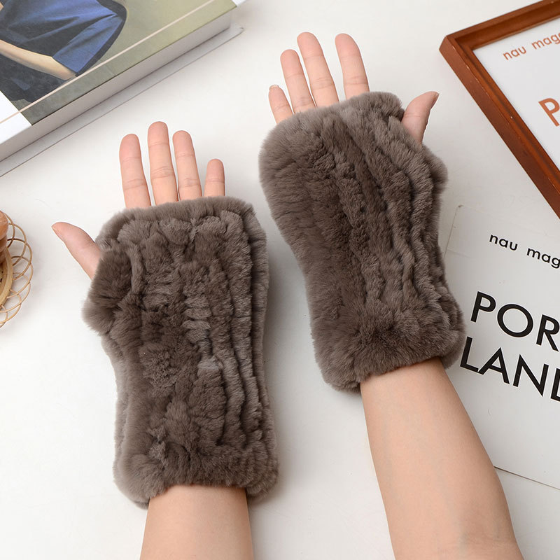 남성과 여성을위한 렉스 토끼 헤어 짠 장갑 겨울 두꺼운 따뜻한 모든 매치 팔찌 달콤한 귀여운 반 손가락 탄성 슬리브 손가락 누출스토어 가기