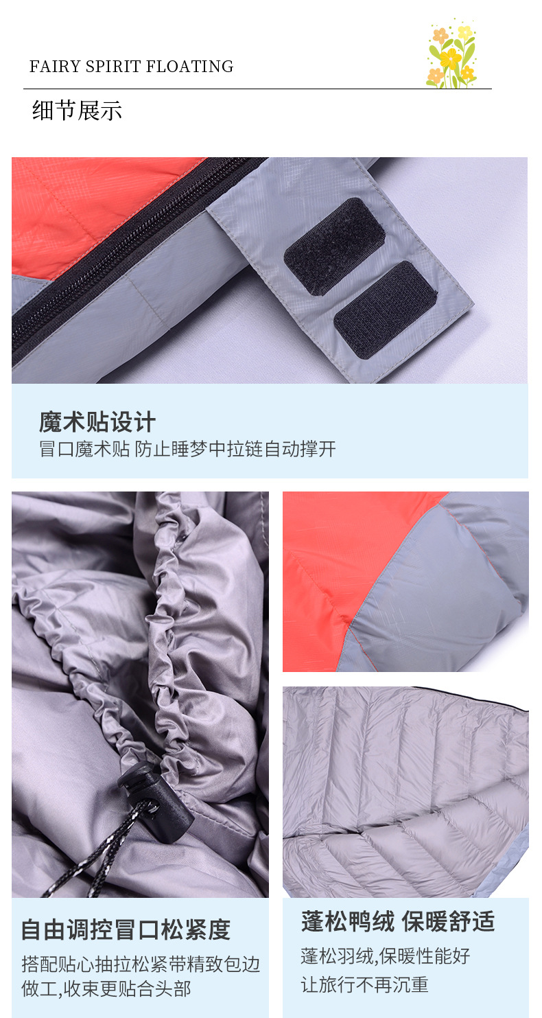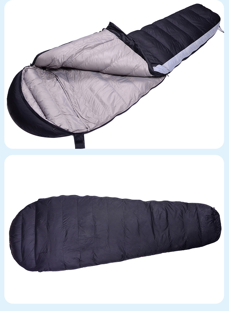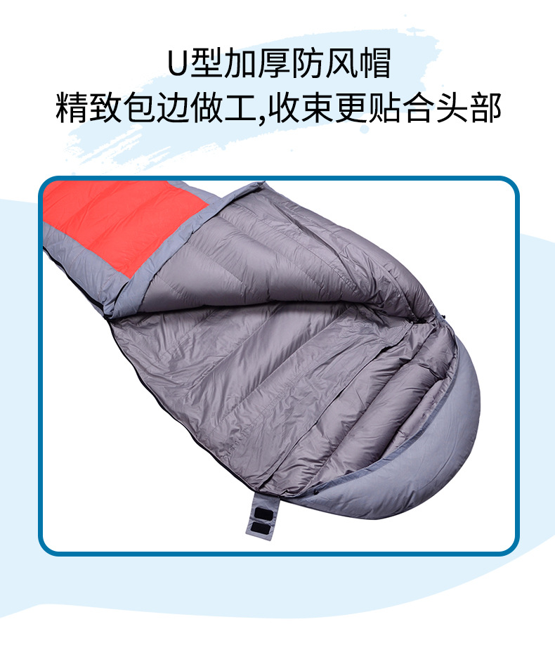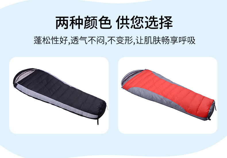 跨境户外露营羽绒睡袋木乃伊成人野营登山便携式白鸭绒妈咪款睡袋