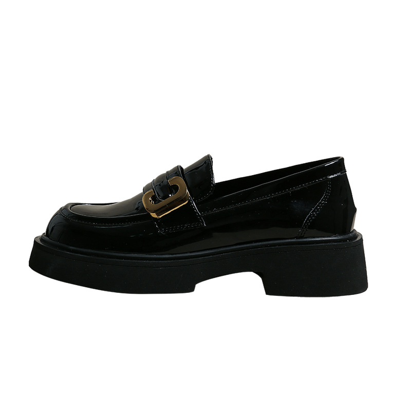 [마이푸] 검은 두꺼운 밑창 특허 가죽 신발 어린이 2024 가을 새 슬립 온 싱글 신발 영국 스타일 로퍼스토어 가기